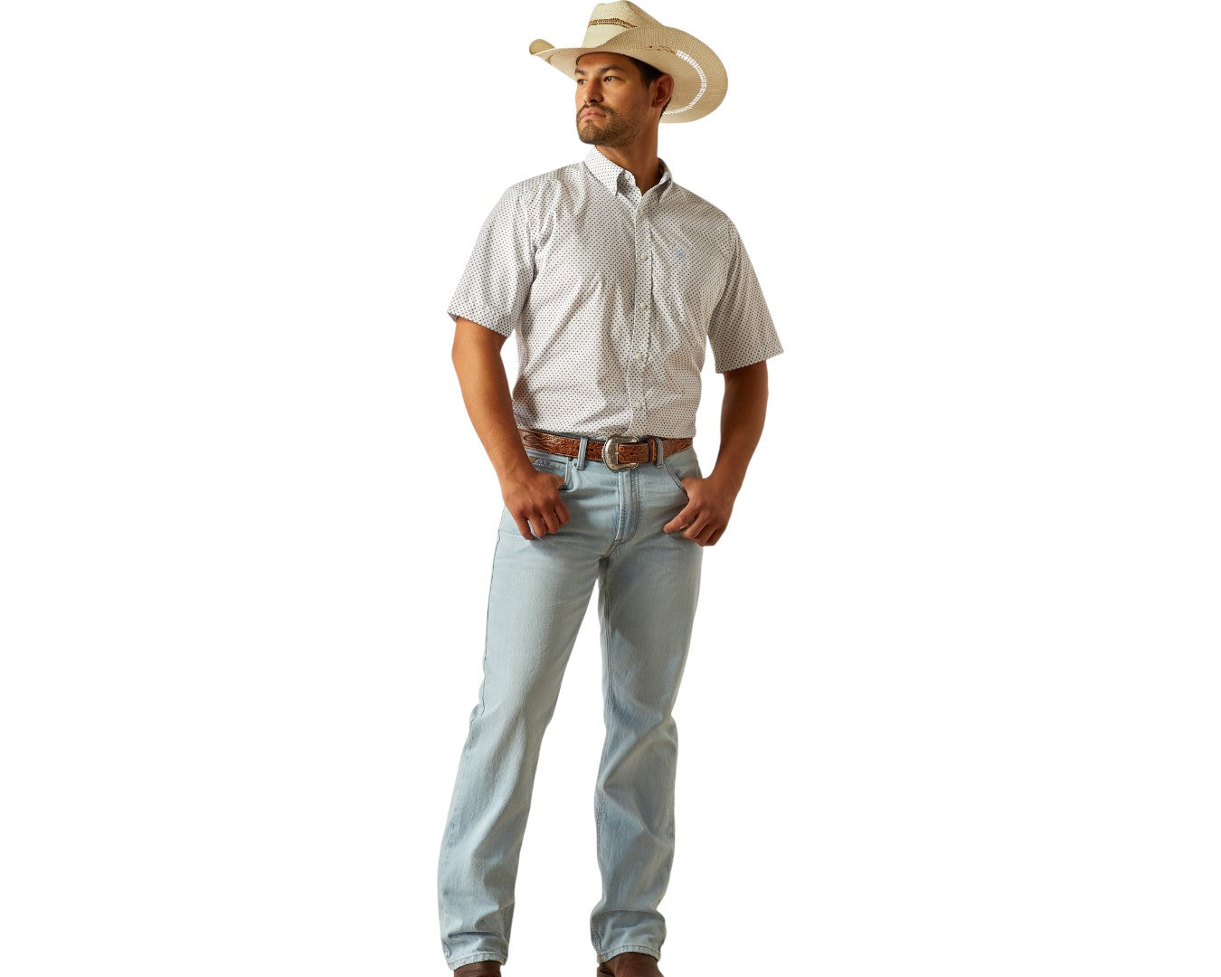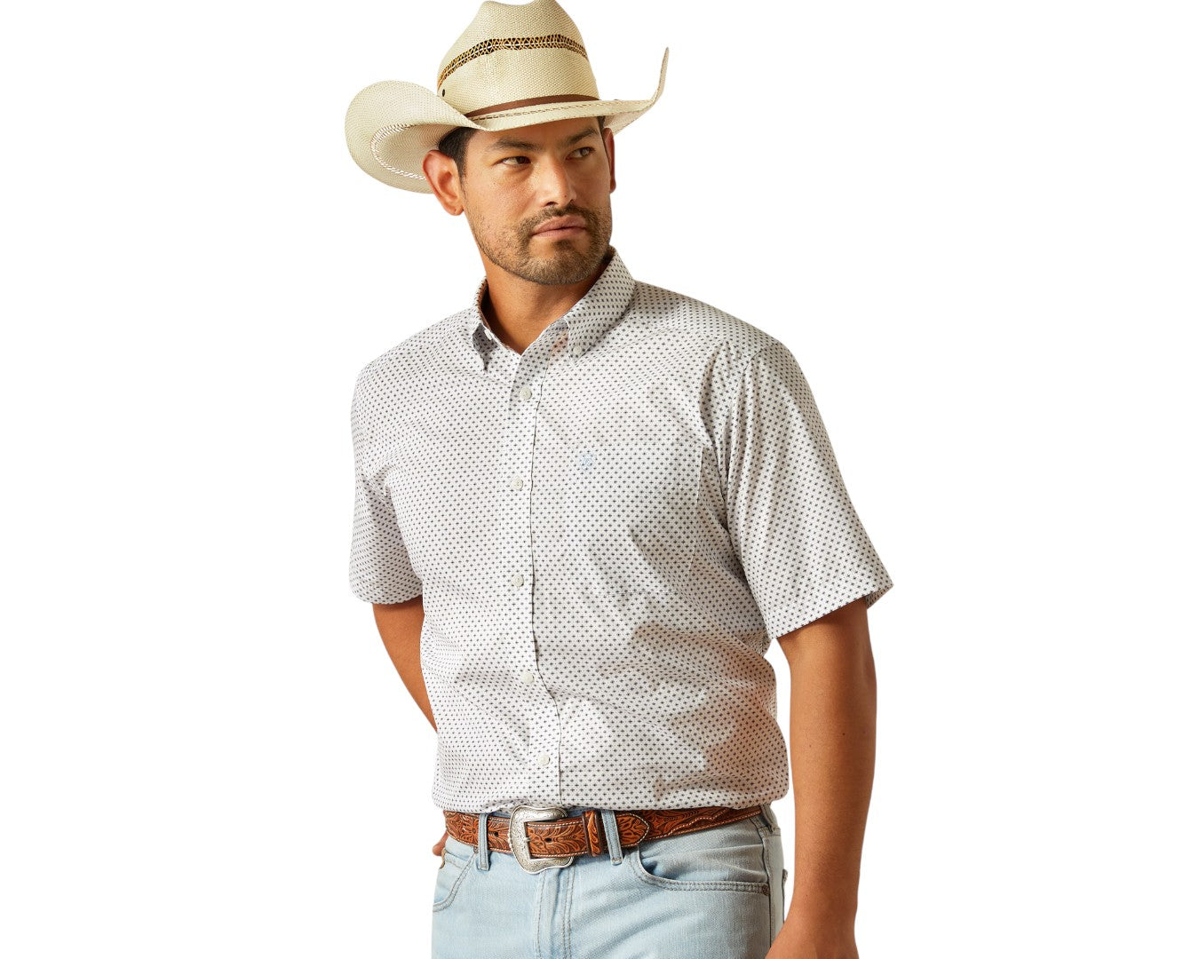 Stay sharp all day with the Ariat Men’s Wrinkle Free Damien Shirt, crafted for comfort, durability and timeless Western style. Designed with a wrinkle-free finish and taped seams, it keeps you looking crisp from morning meetings to evening gatherings. Adjustable cuffs with extended button detail make rolling up your sleeves effortless, while the button-front closure and collar points offer a classic look. Featuring Ariat branding and a hidden pen slot in the left pocket, this shirt blends function with style.