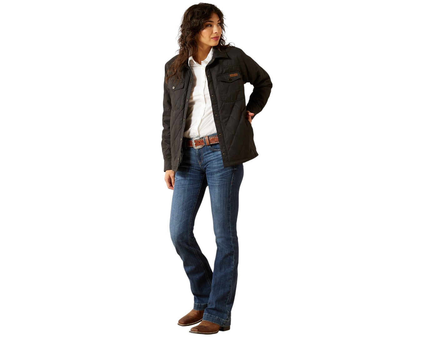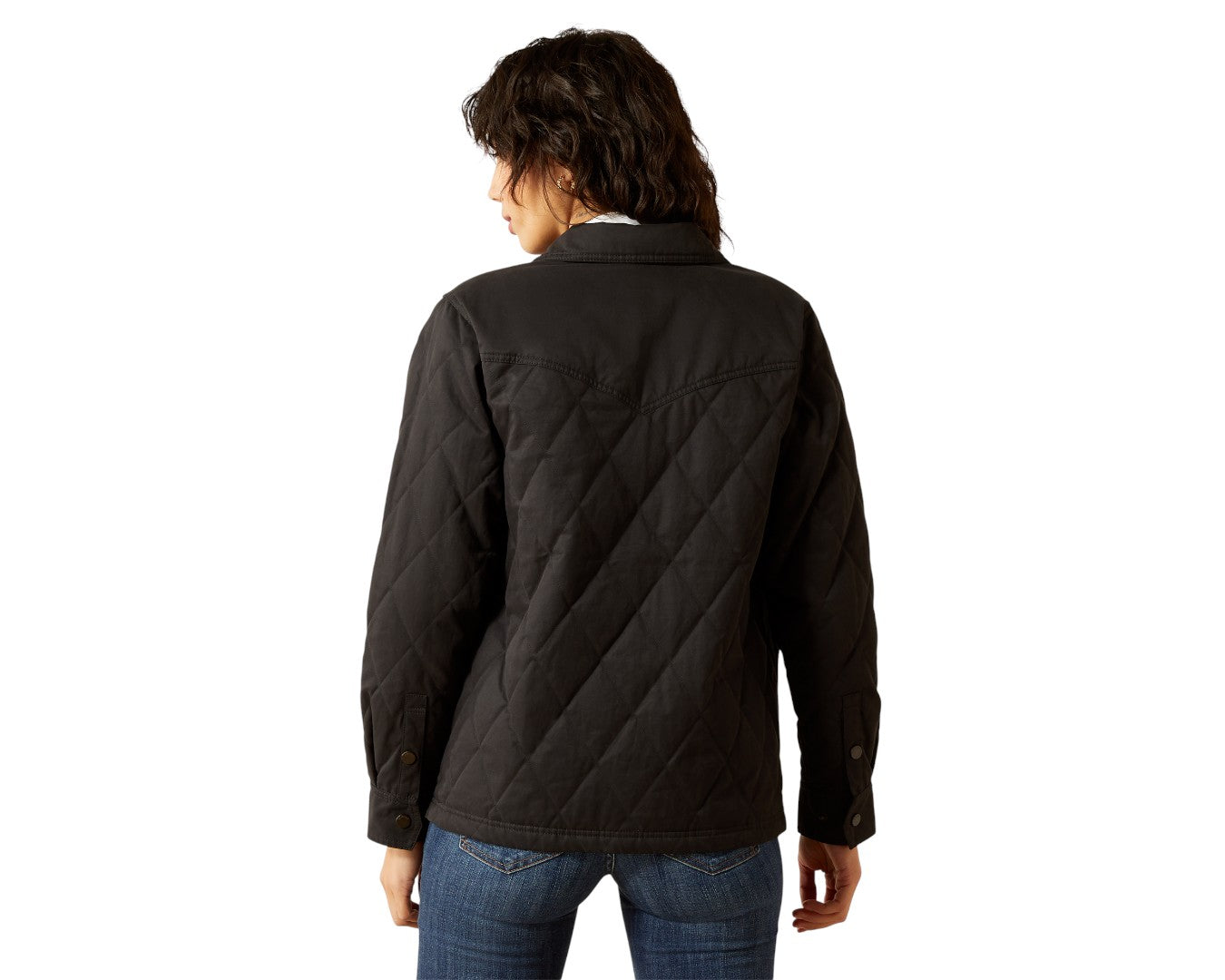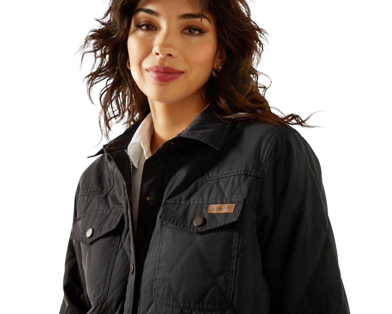 The Ariat Women's Grizzly Quilted Barn Jacket is the ideal ladies barn jacket for comfort and performance. Crafted with stretch peached twill and a soft fleece lining, it offers warmth without bulk. Its wind- and water-resistant fabric keeps you protected in unpredictable weather, while breathable construction ensures all-day comfort. Designed with a snap front closure and double hand warmer pockets, this jacket blends practicality with everyday style. With 60g insulation and a familiar, effortless fit, it's perfect for work or casual wear.