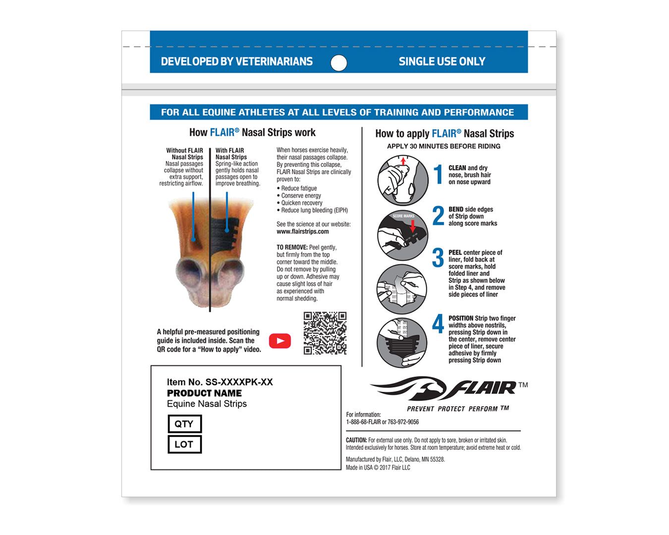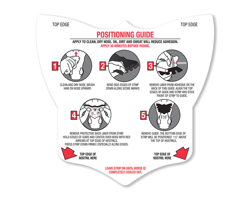 The strips gently support the soft tissues over the nasal passages (the narrowest part of the upper airway) and reduce airway resistance when your horse needs oxygen most.