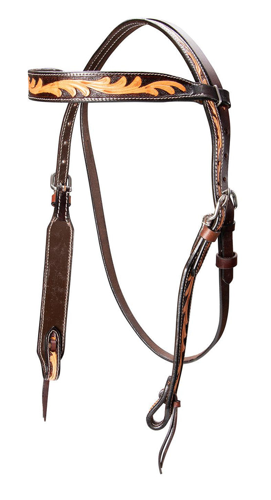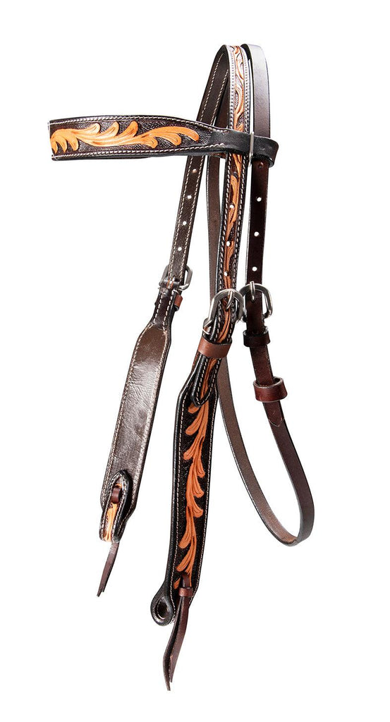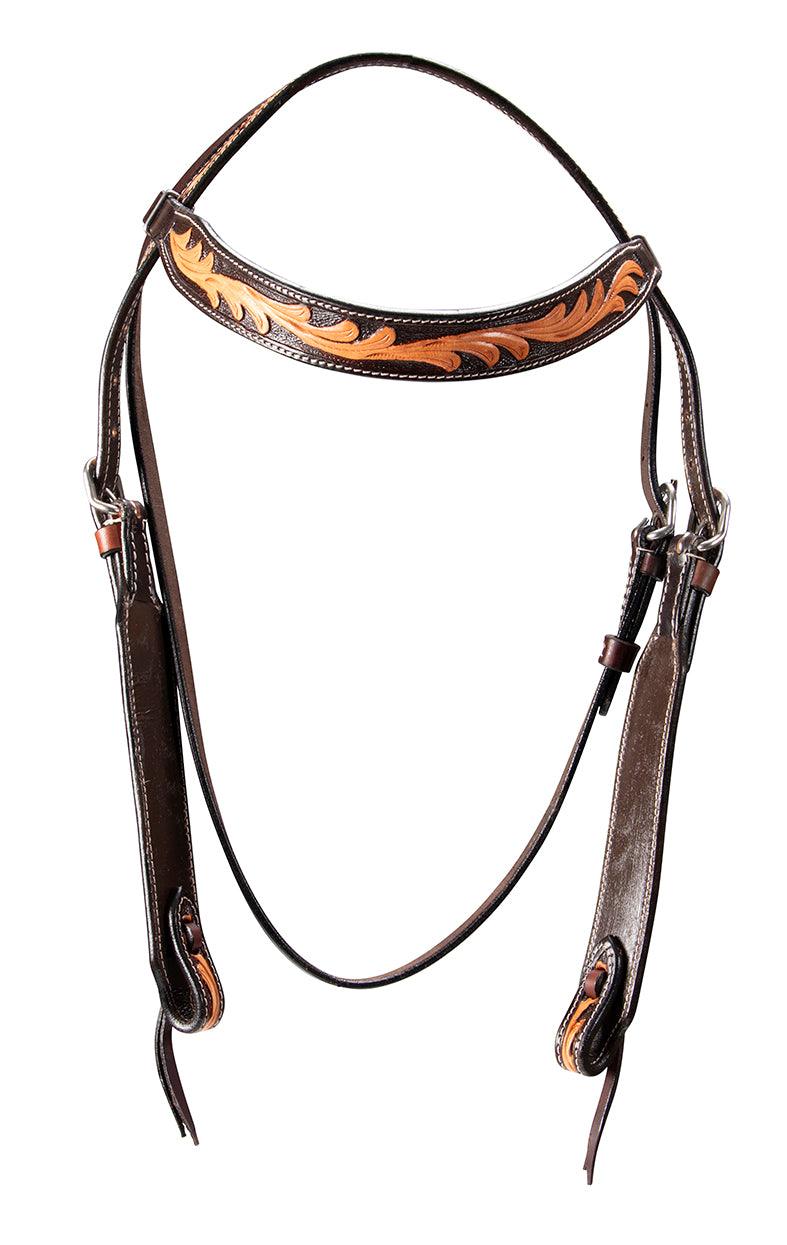 Fort Worth Tooled Leaf Headstall - Two Tone