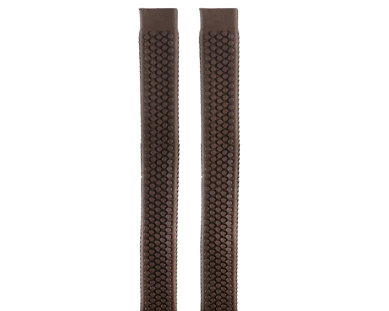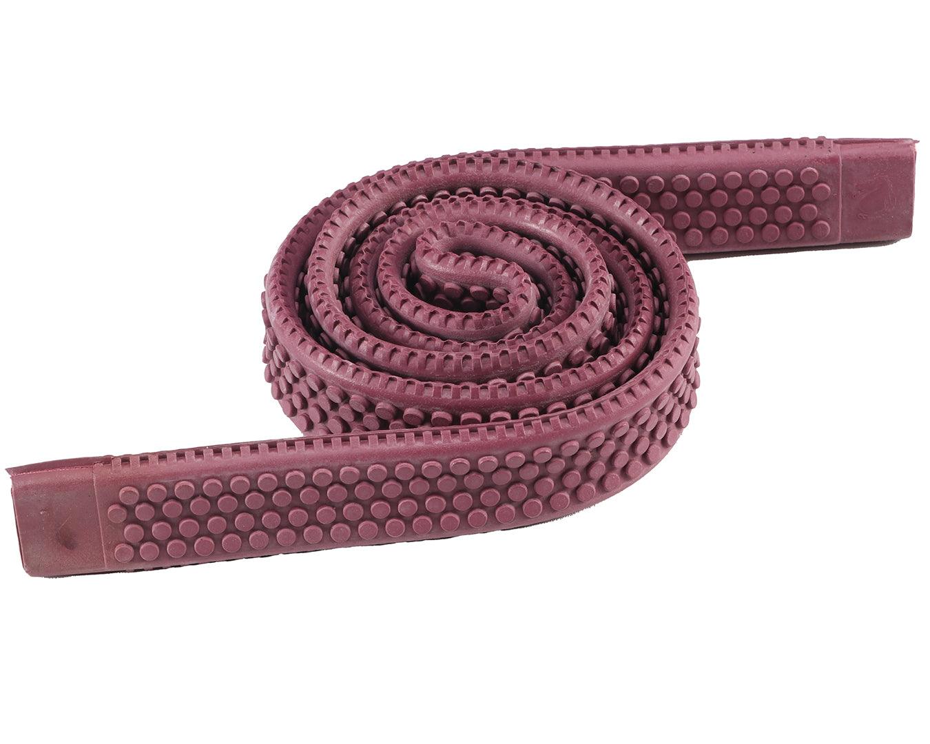 Rubber Rein Grips with large pimple grips offer secure, non-slip handling in all conditions. Measuring 5/8" thick and 30" long, these grips are available in a variety of colours to suit your style or stable needs. They are designed for durability and comfort, making them ideal for everyday riding or competition use.
