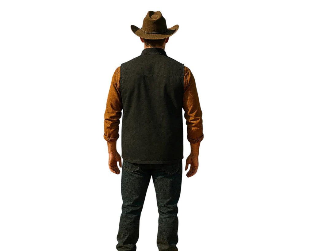 The Rangebound Vest is a hardworking essential, built for life on the move. Crafted from durable 380gsm waxed cotton, this water-resistant outer layer offers protection from the elements while allowing full freedom of movement. A rib-knit collar adds comfort and wind protection, while the reliable YKK zipper ensures smooth fastening every time. Finished with the classic OUTBACK patch on the chest, this vest is made to layer, made to last, and made to stand out.