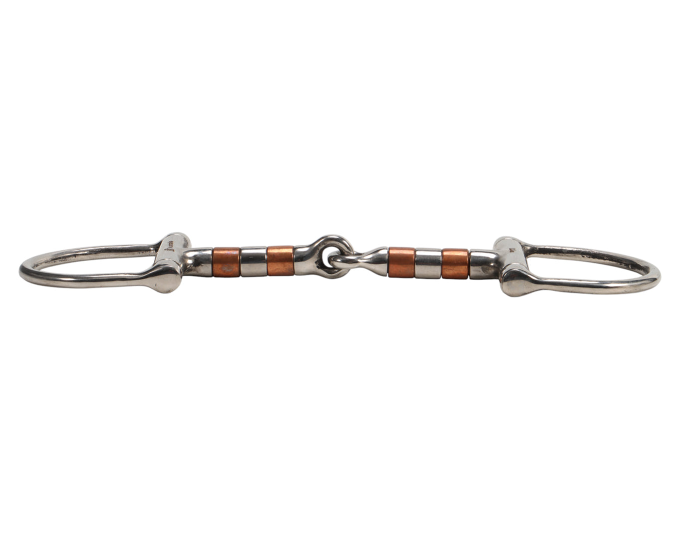The Racing Dee Bit with Copper & Stainless Steel (SS) Rollers is a popular bit designed for racehorses, known for enhancing responsiveness and comfort. Its defining feature is the copper and stainless-steel rollers along the mouthpiece, which work together to keep the horse's mouth moist and responsive.