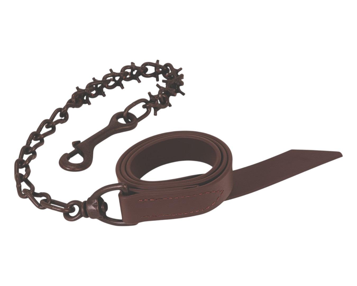 The Weaver Brahma Webb Pronged Lead is designed for effective training and control of stubborn or hard-to-handle animals. Made from durable Brahma Webb® coated webbing with a realistic leather grain finish, it offers the soft, supple feel of leather while being weather-resistant and easy to clean-simply spray off dirt and slobber with water. This 36" black lead paired with a 20" black pronged chain provides secure handling, making it ideal for livestock training. Shop now to experience reliable control with a comfortable, low-maintenance lead.