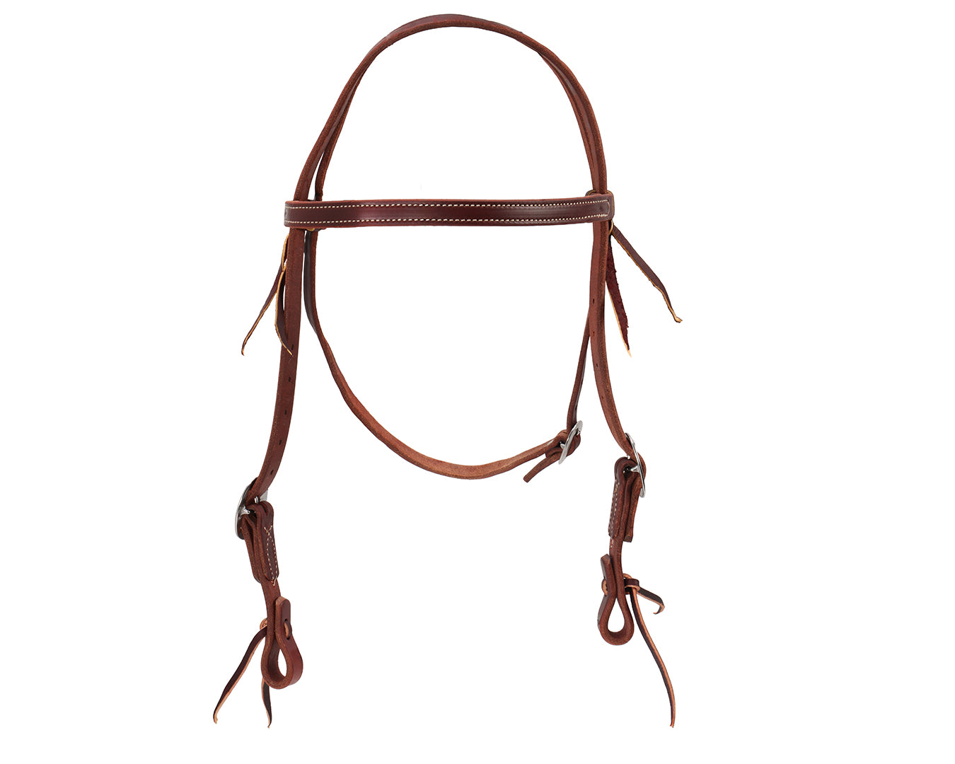 The Weaver Cowboy Hand Tooled Headstall features a simple single-ply design made from premium harness leather that provides an exceptional feel. It is hand-tooled by skilled craftspeople, then oiled to enhance durability and appearance. This headstall emphasizes quality craftsmanship and rugged functionality suitable for working or training purposes with a traditional western style.