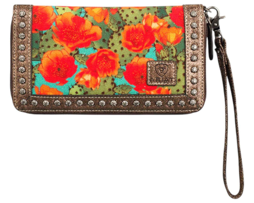 Elevate your accessory game with the Ariat Prickly Pear Cactus Clutch Wallet, a stylish and functional must-have for modern women. Featuring a unique multi-coloured design with a distinctive prickly pear cactus print, this wallet combines western-inspired aesthetics with practical organization. Crafted with premium materials, it offers multiple card and cash slots, plus a convenient centre zipper pocket. Perfect for everyday use or a night out, this clutch wallet adds a touch of southwestern flair to your ensemble.