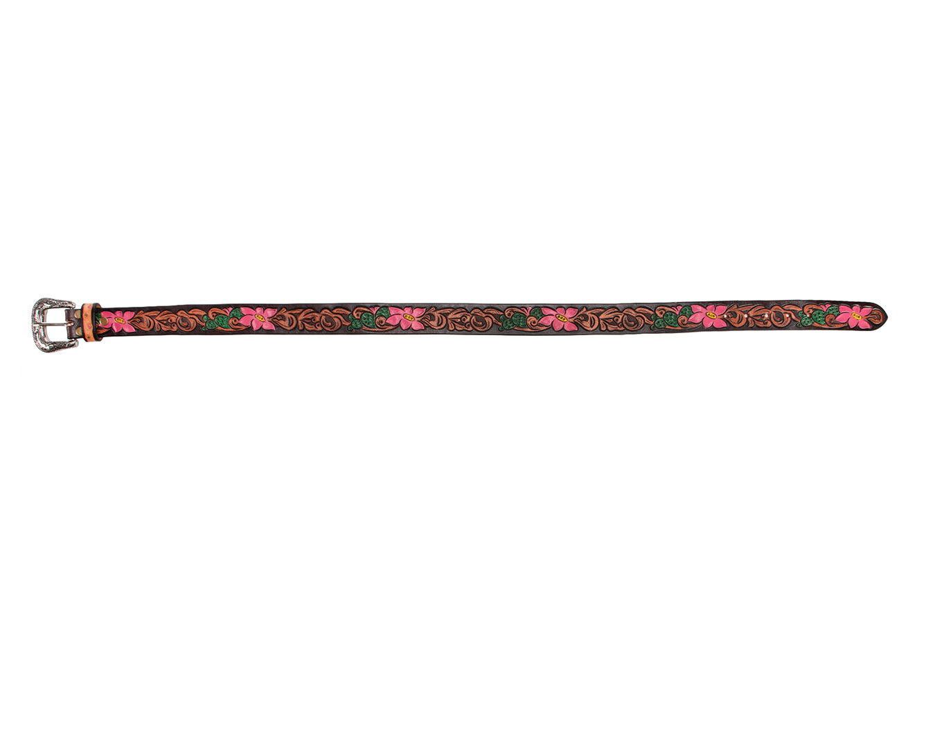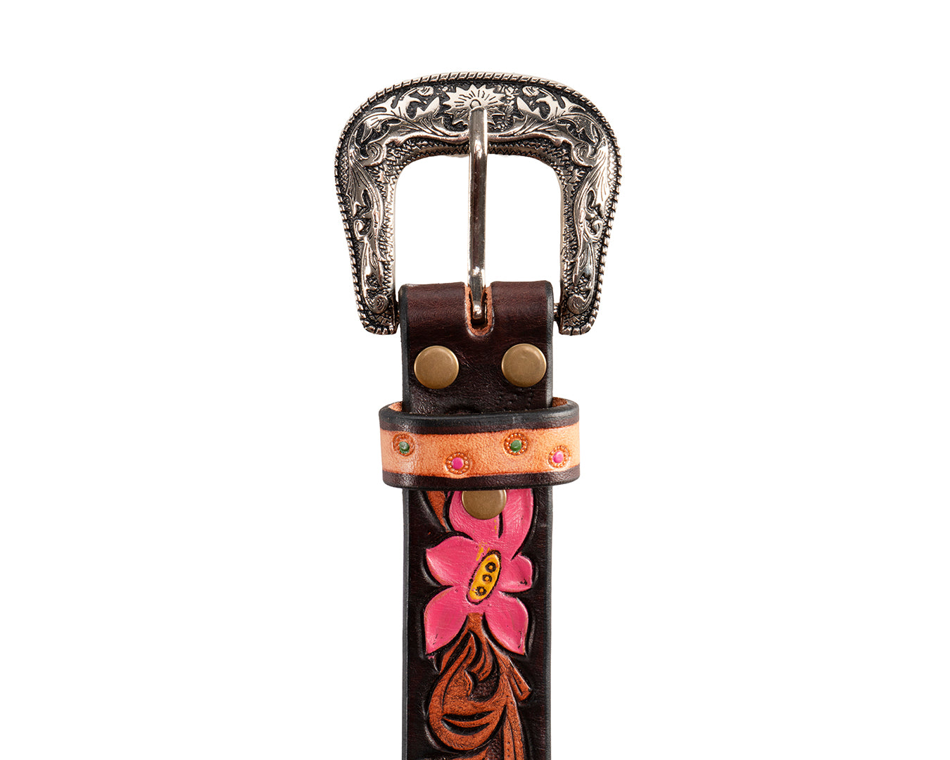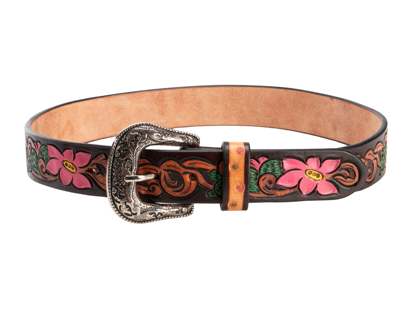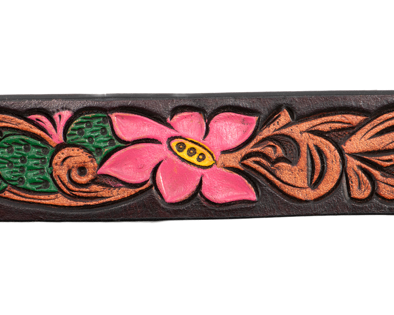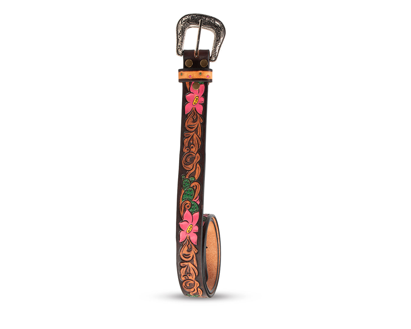 Fort Worth Tooled Leather Belt- Cactus Flowers