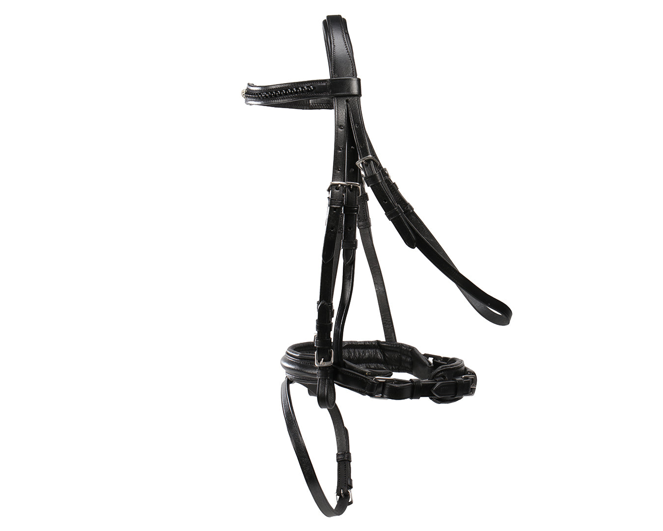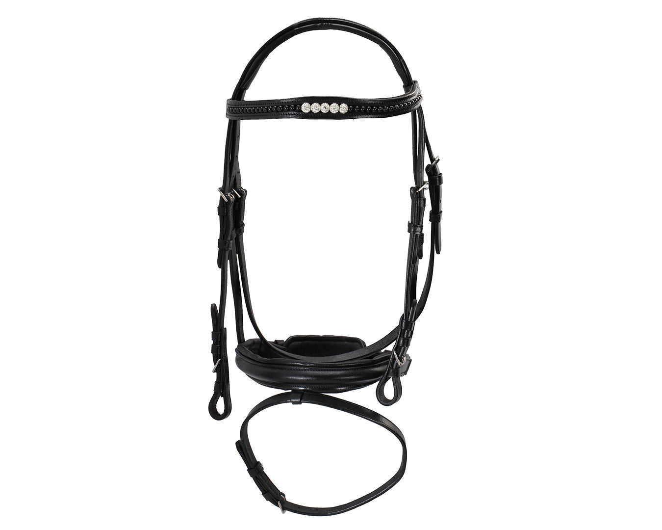 The Sterling Black Pearl Snaffle Bridle combines premium craftsmanship with elegant design, crafted from supple black leather for durability and comfort. Featuring a beautifully padded noseband and browband adorned with subtle pearl detailing, this bridle offers both style and function. Its stainless-steel fittings ensure lasting strength, while the soft padding reduces pressure for your horseās comfort. Perfect for riders seeking a refined, show-ready look with superior quality.