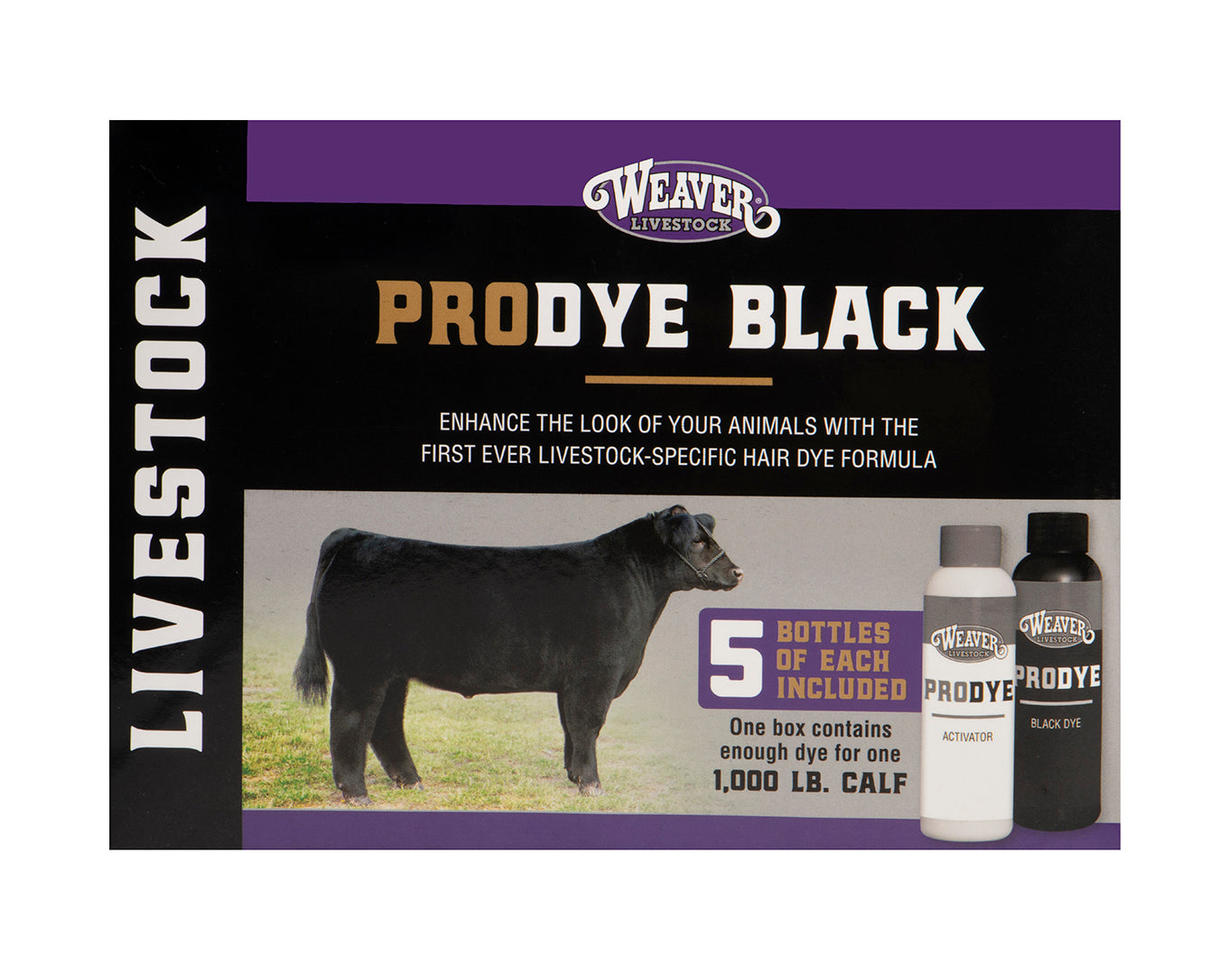 Transform your livestock with Weaver ProDye Livestock Hair Dye, specially designed to deliver a bold, rich black coat for cattle and sheep. This easy-to-apply formula enhances dull or uneven hair, providing long-lasting, uniform colour for that fresh, showday look. Perfect for boosting the vibrancy of black calves and lamb legs, it gives your animals a consistent, balanced appearance from front to back. One box contains five bottles of both dye and activator, enough for full coverage of a 450kg beast.