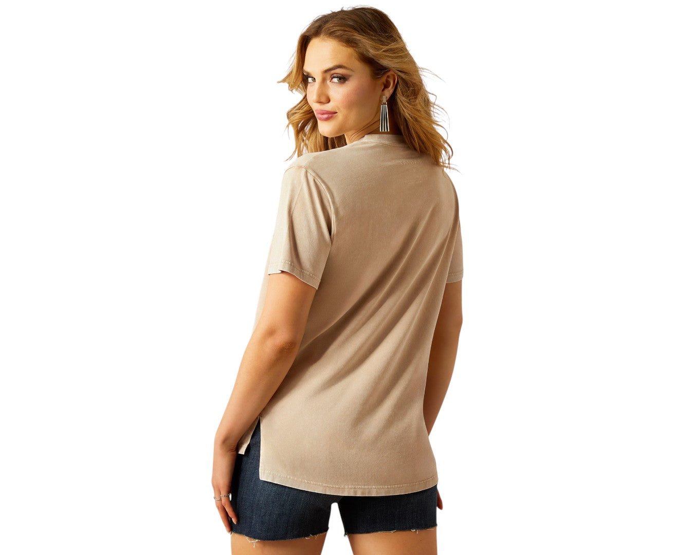 Liven up your everyday wardrobe with the Ariat Women’s More Cowboys T-Shirt, a comfy and stylish staple with a true Western flair. Made from a soft jersey blend of 95% cotton and 5% elastane, this tee offers just the right amount of stretch to move with your body. The garment is prewashed to help minimise shrinking, ensuring a perfect fit every wear. Featuring a high-low hem, bold screen-printed graphics, and chic stud detailing, it’s the ideal mix of comfort and cowboy spirit.