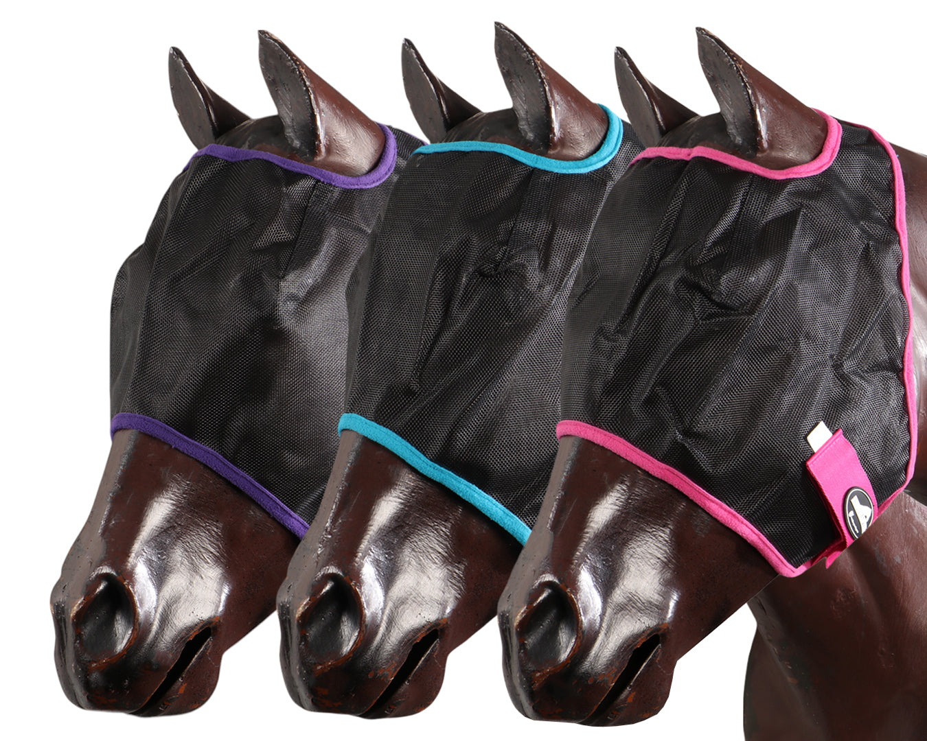 Protect your horse from flies and harsh sunlight with the Show master Black Mesh Fly Mask, now available in Pink, Purple, and Turquoise. Designed with classic black mesh for optimal visibility and soft fleece binding to prevent rubbing, this fly mask ensures comfort and durability. The adjustable Velcro jowl fastening provides a secure fit, while pleated mesh keeps the mask off your horse’s face. Choose from vibrant colours to match your horse’s style.