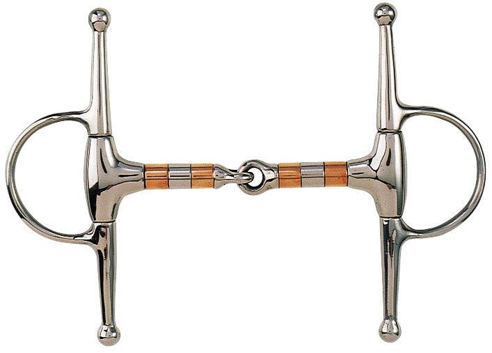 - This Snaffle has full cheeks with Copper & Stainless Steel to encourage the horse to play with the bit.