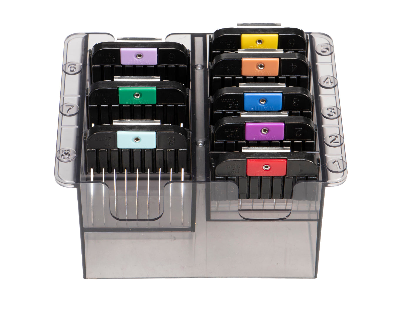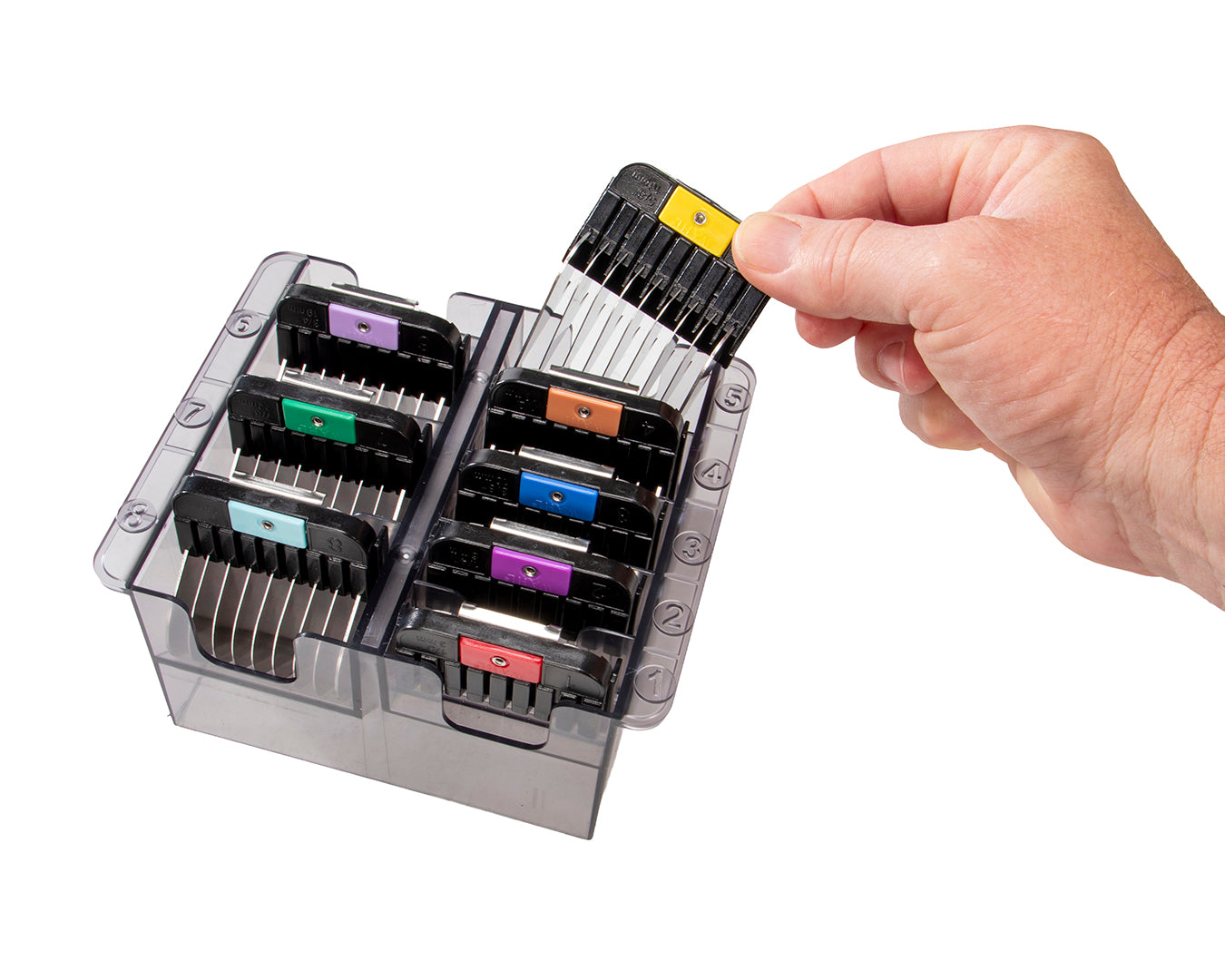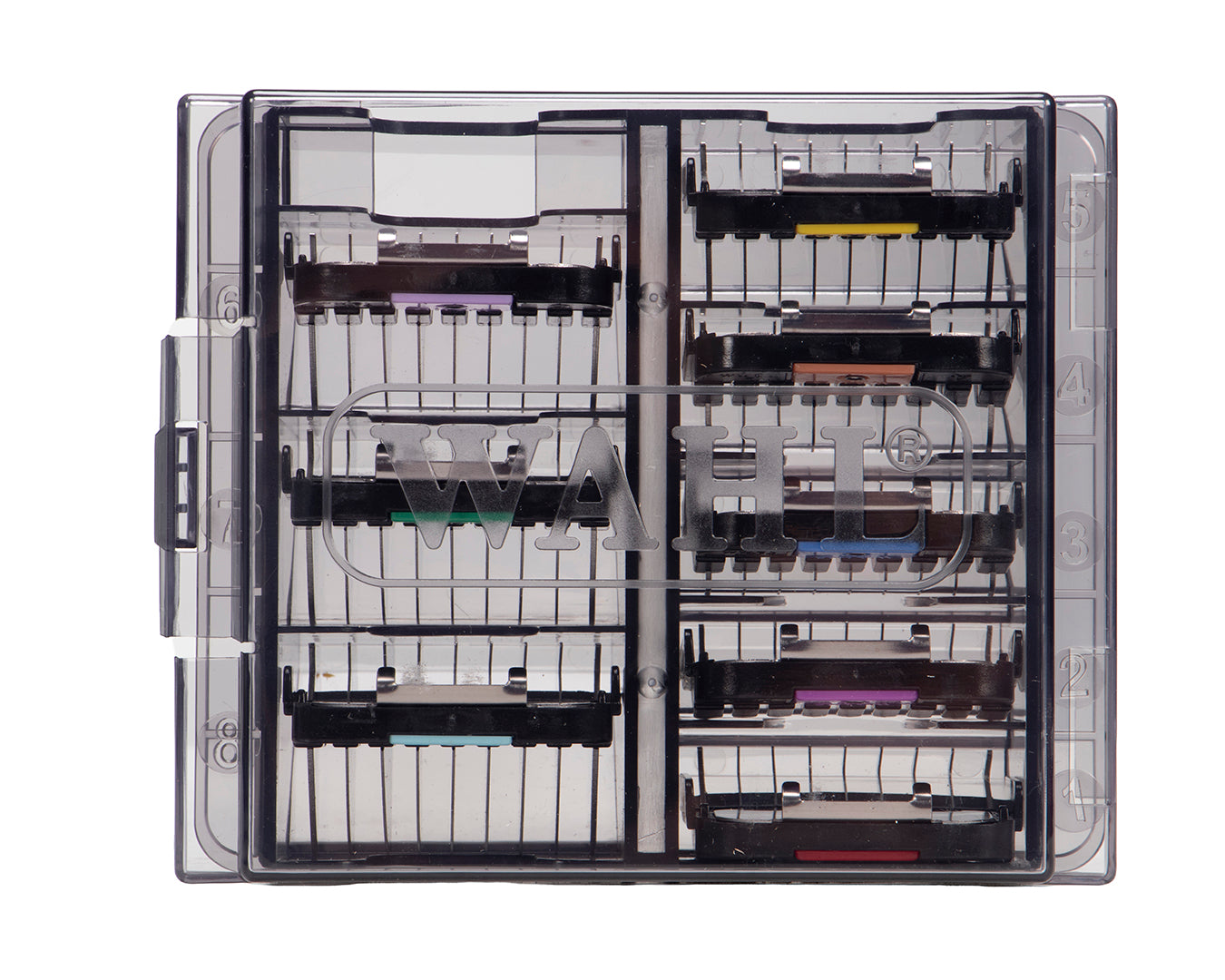 - The Wahl stainless steel guide combs are colour-coded for easy size identification.