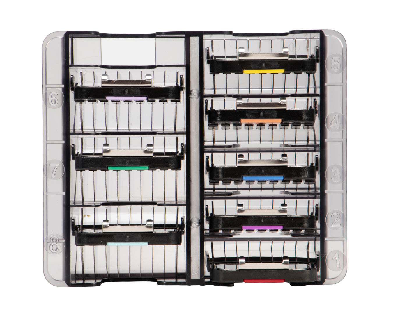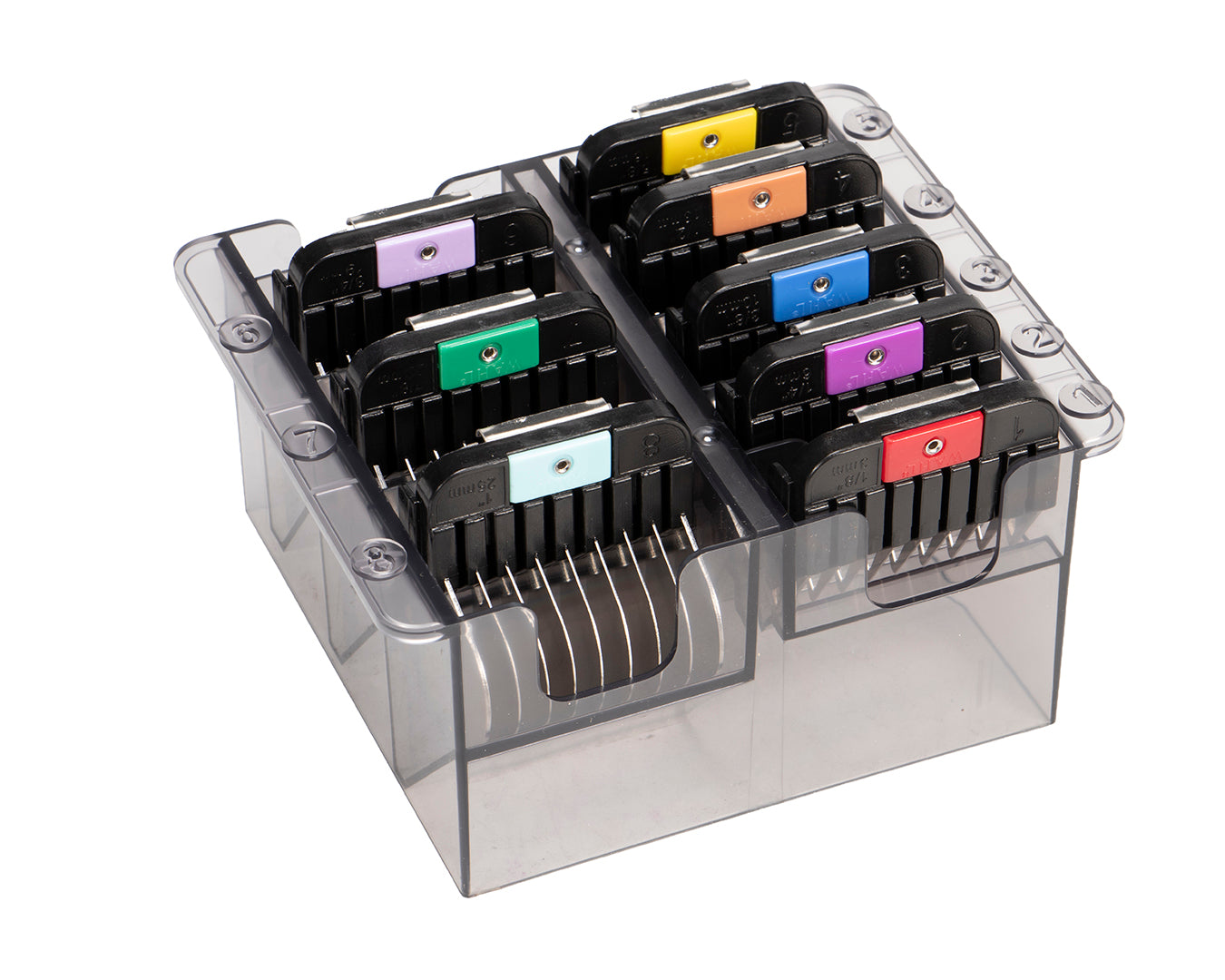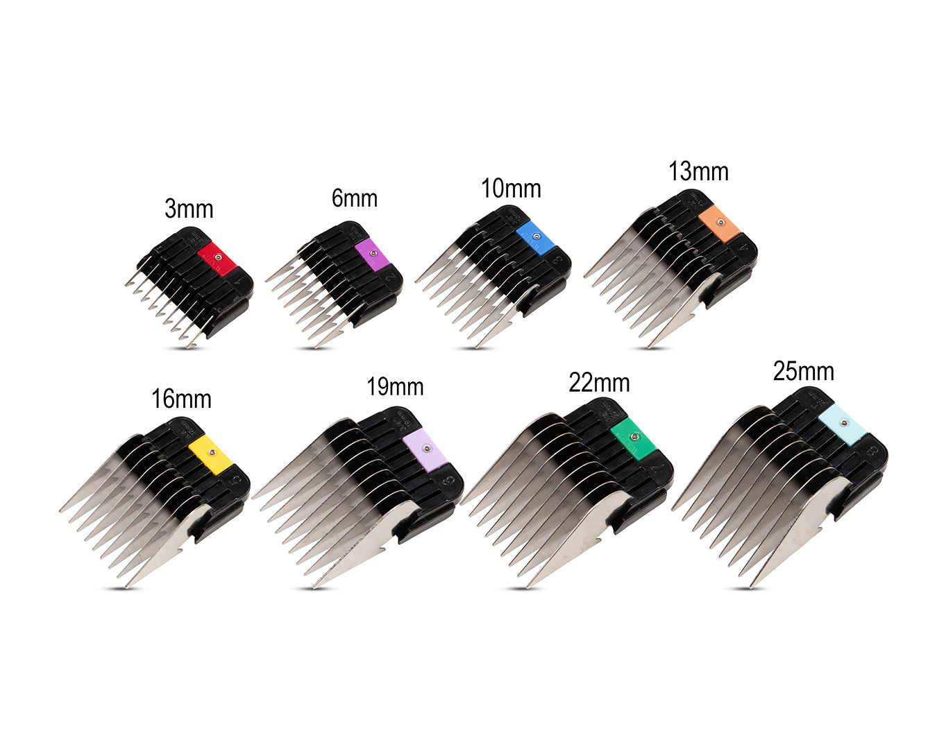 - The Wahl stainless steel guide combs are colour-coded for easy size identification.