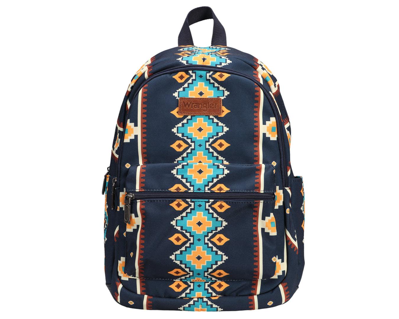 Discover the Wrangler Southwestern Canvas Backpack, where style meets practicality. Featuring a vibrant Aztec pattern printed on durable canvas, this backpack is designed for the modern lifestyle. With dual zip compartments and multiple internal pockets, it offers ample storage for your essentials, including a padded compartment for your laptop or tablet. The adjustable padded shoulder straps ensure comfort during your daily adventures, while the iconic Wrangler logo badge adds a touch of authenticity. Perfect for school, work, or travel, this backpack is your go-to accessory for both function and flair. Shop now to elevate your everyday carry!