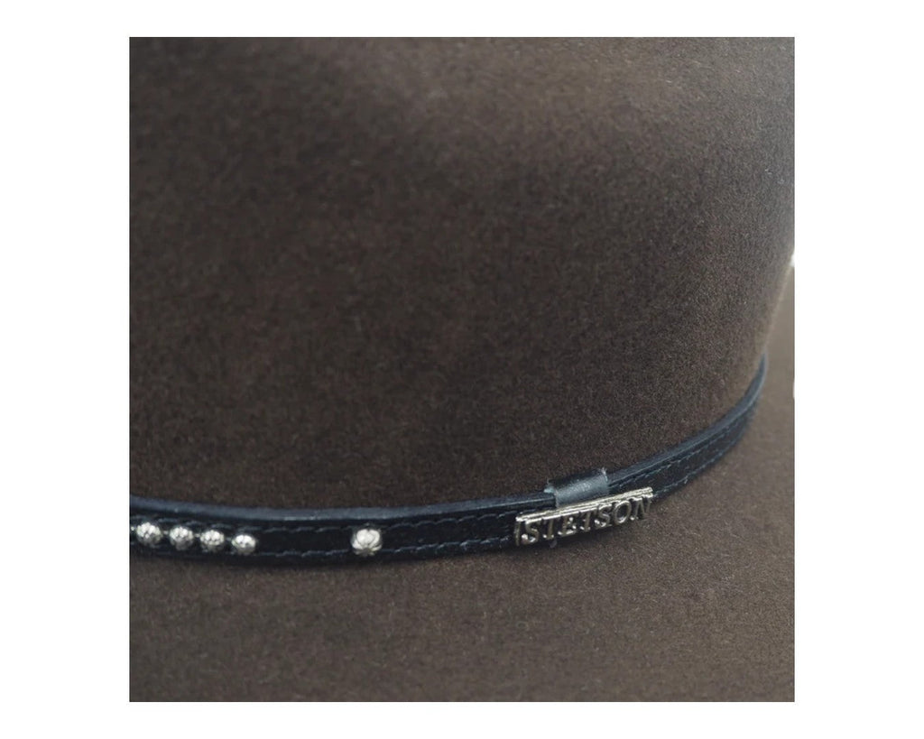 Experience the timeless charm of the Stetson Oregon Wool Felt Hat, a classic Western style that blends city sophistication with rugged tradition. Handcrafted from high-quality wool felt, this hat features a distinct pinch front crown and is finished with a silver-accented leather hat band, adding a touch of elegance. Perfect for any occasion, the Oregon Hat provides a comfortable fit and premium comfort, making it a must-have for those who appreciate enduring quality and style. This hat is ideal for both casual and formal wear. Shop now to own a piece of Western heritage!