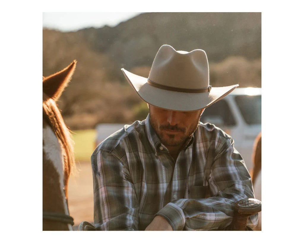 Experience the rugged elegance of the Stetson Seneca 4X Buffalo Wool Felt Hat. Handcrafted from premium 4X quality buffalo wool felt, this hat combines durability with style, featuring a pinch front crown and a tooled leather hat band accented with a striking silver buckle set. The interior leather sweatband ensures comfort, while the water-repellent design makes it perfect for long days outdoors. Part of Stetson's renowned Buffalo Collection, this hat is both functional and fashionable, suitable for any occasion. Discover the timeless charm of Stetson craftsmanship and elevate your style with this iconic piece. Shop now to own a piece of Western heritage!