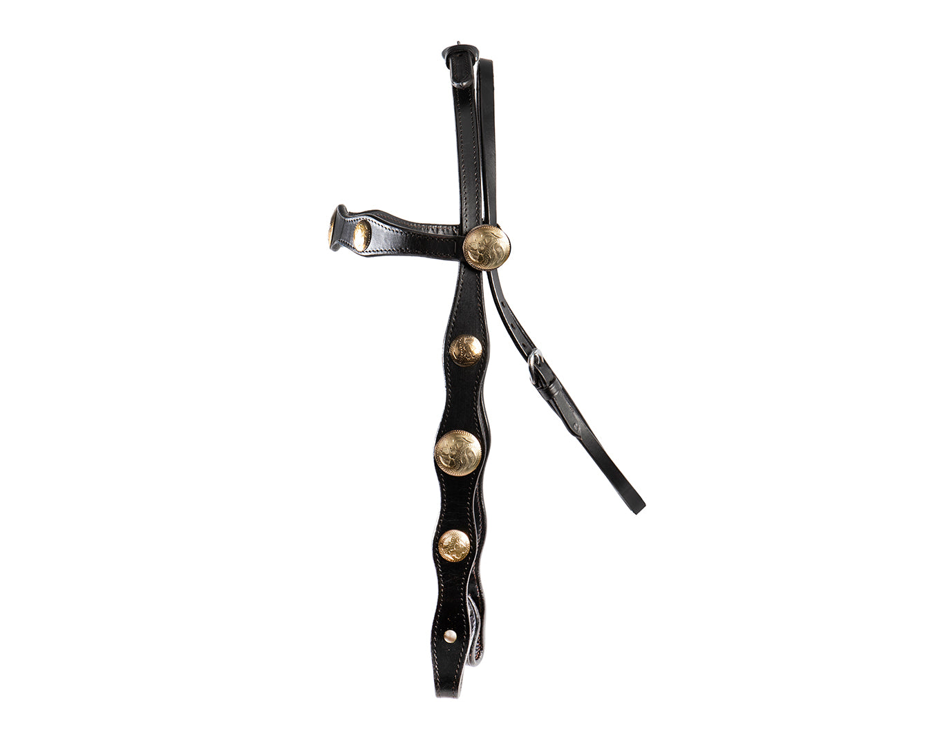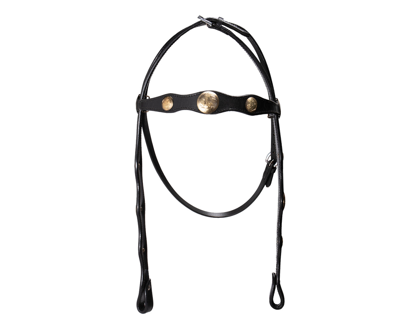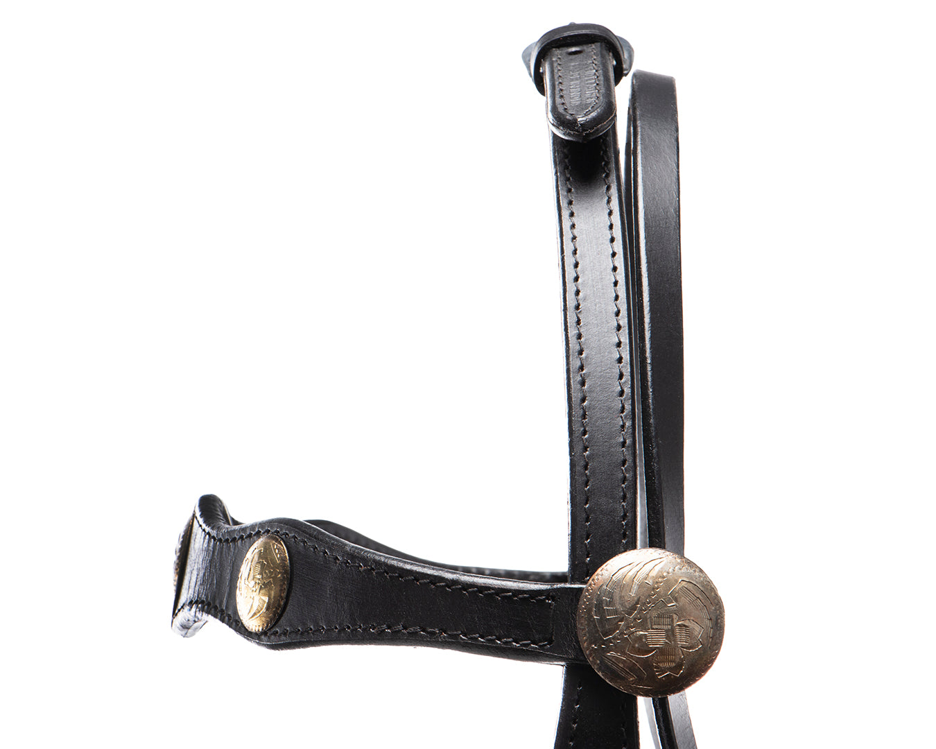 Discover timeless Western style with the Big Concho Western Bridle, an attractive show bridle adorned with imitation silver conchos for that classic cowboy flair. Crafted from durable, high-quality leather, it delivers both strength and comfort for horse and rider alike. Perfect for shows, trail riding, or everyday training, this piece combines eye-catching detail with dependable design. Complete with matching reins, it’s ready to impress right out of the box.