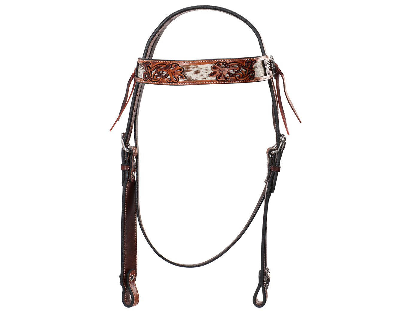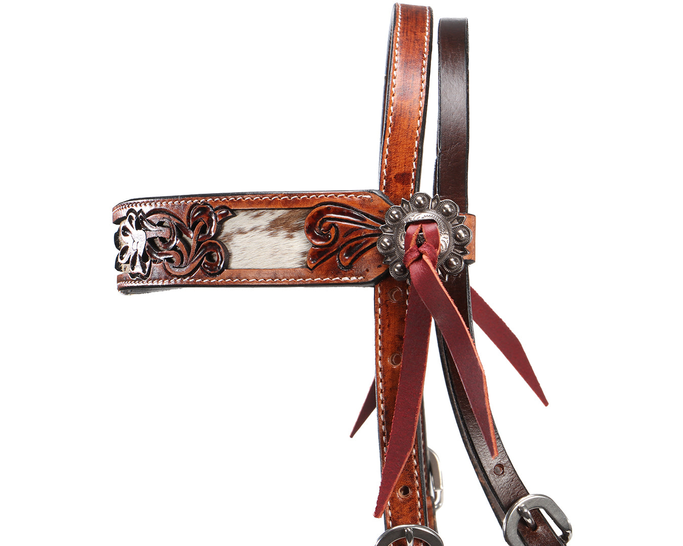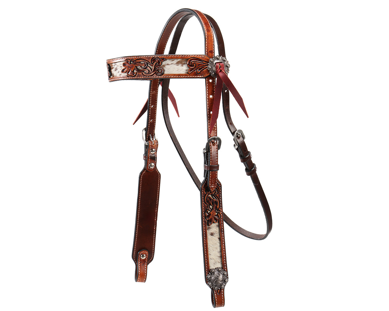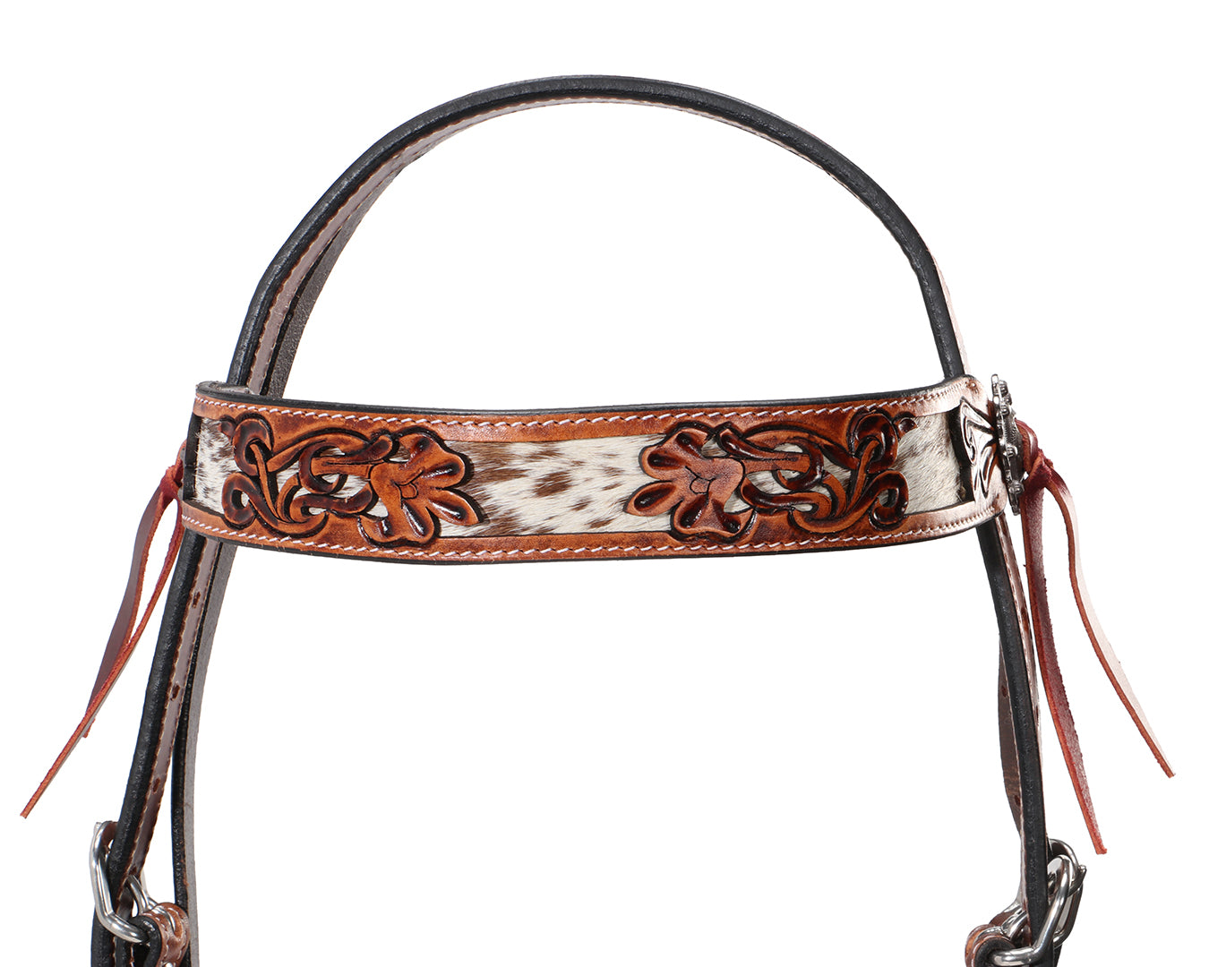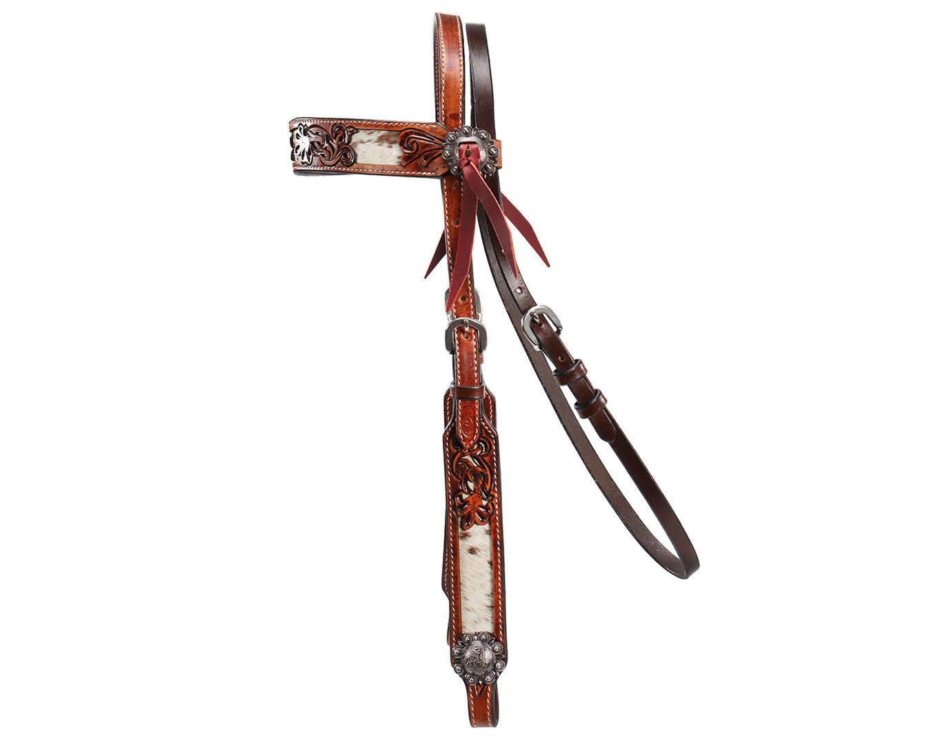Fort Worth Longhorn Headstall- Cowhide Inlay