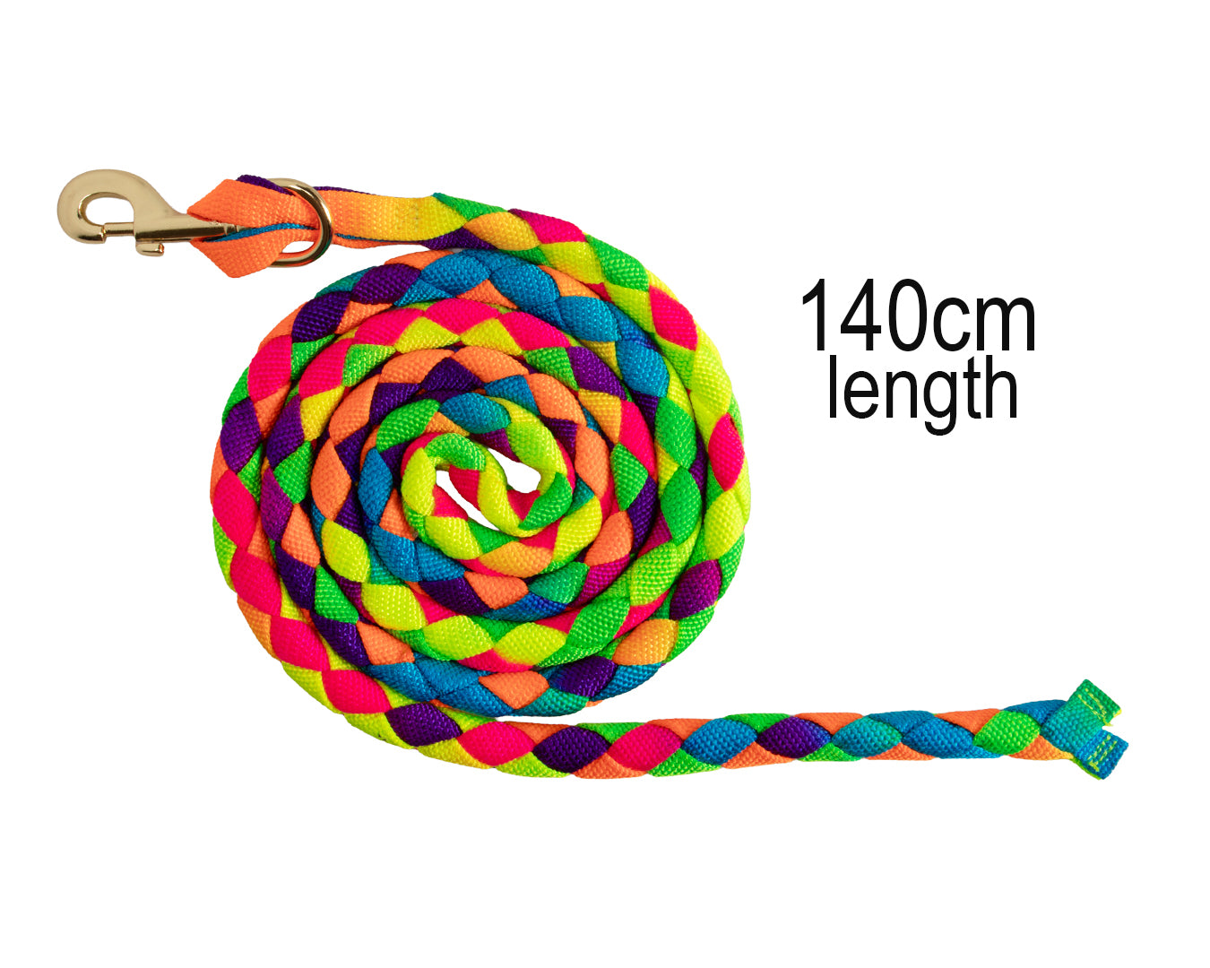 Brighten up your pony gear with the Bambino Hand Braided Rainbow Poly Lead, crafted for comfort and style. This 140cm lead perfectly matches the Bambino Rainbow Halter, creating a stunning, coordinated look. Its lightweight, hand-braided poly design ensures a secure yet soft grip, ideal for small hands. Finished with a brass-coloured snap, it adds durability and a touch of polish to your handle. Designed for young riders and mini ponies, this lead balances functionality, safety, and fun.