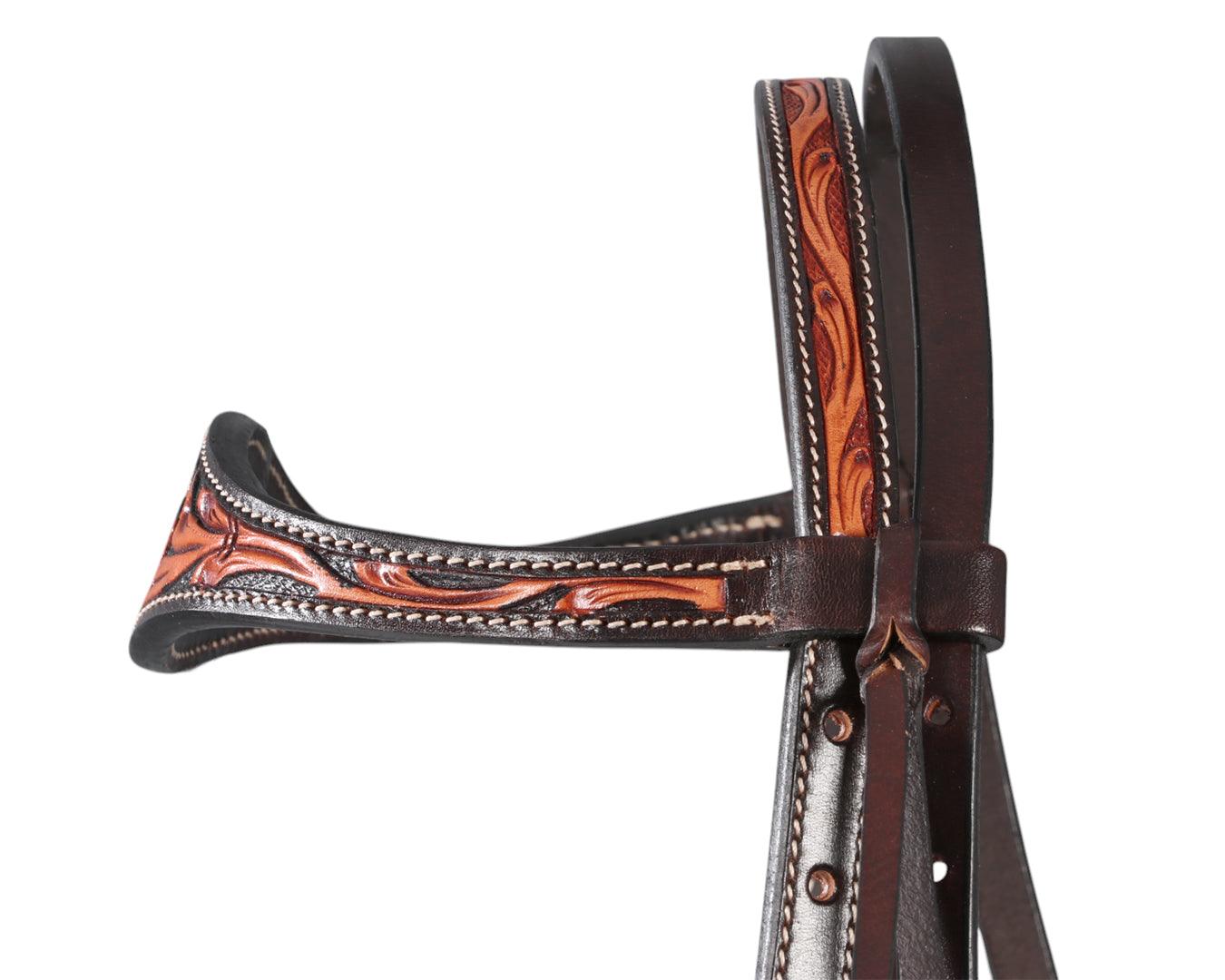 Crafted from premium quality leather, the Frontier Headstall is a standout piece from Fort Worth Saddlery’s new Frontier collection. Featuring a striking two-tone finish and intricate filigree tooling, it blends durability with classic Western style. Designed to pair perfectly with the matching breastcollar and spur straps, this headstall completes a coordinated and polished look for the arena or trail.