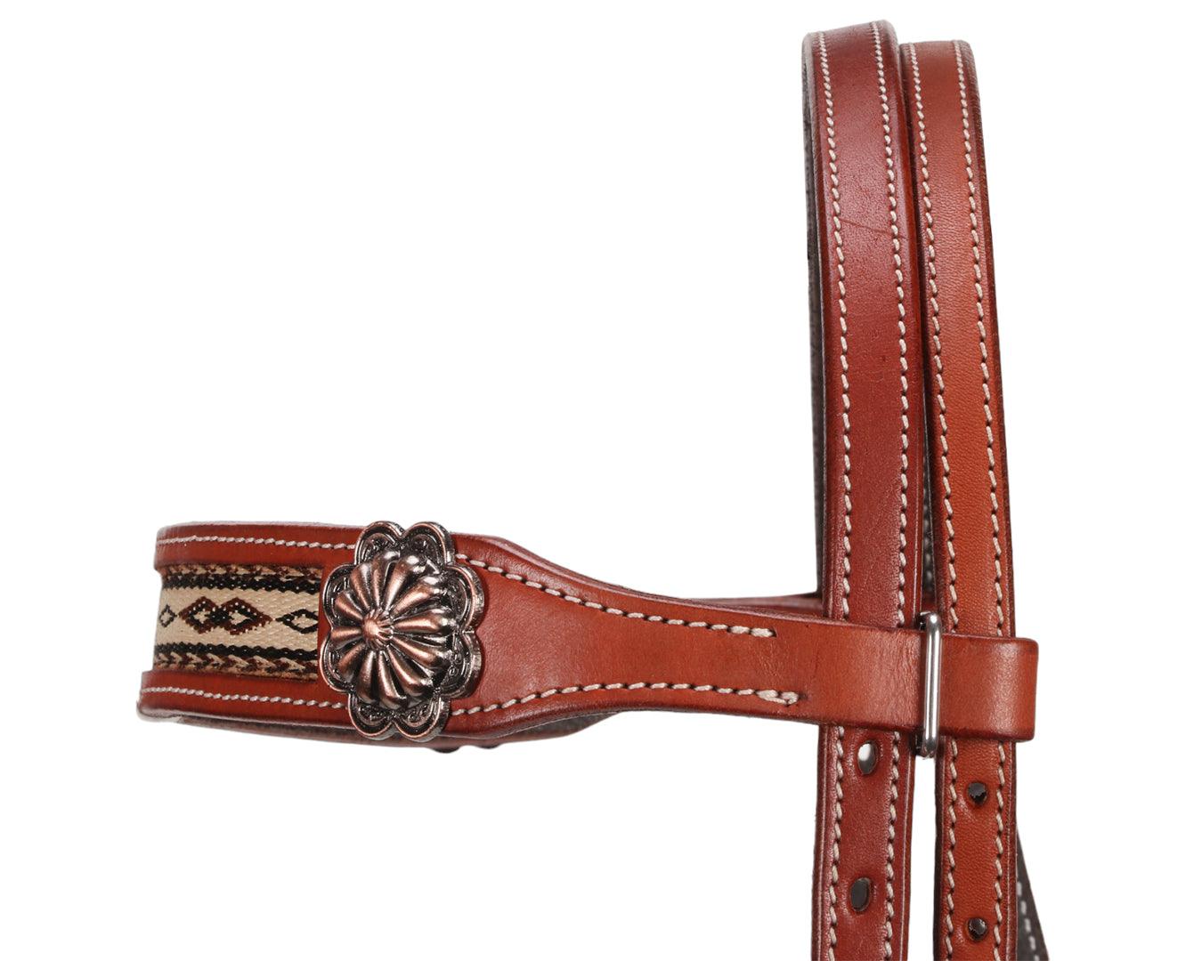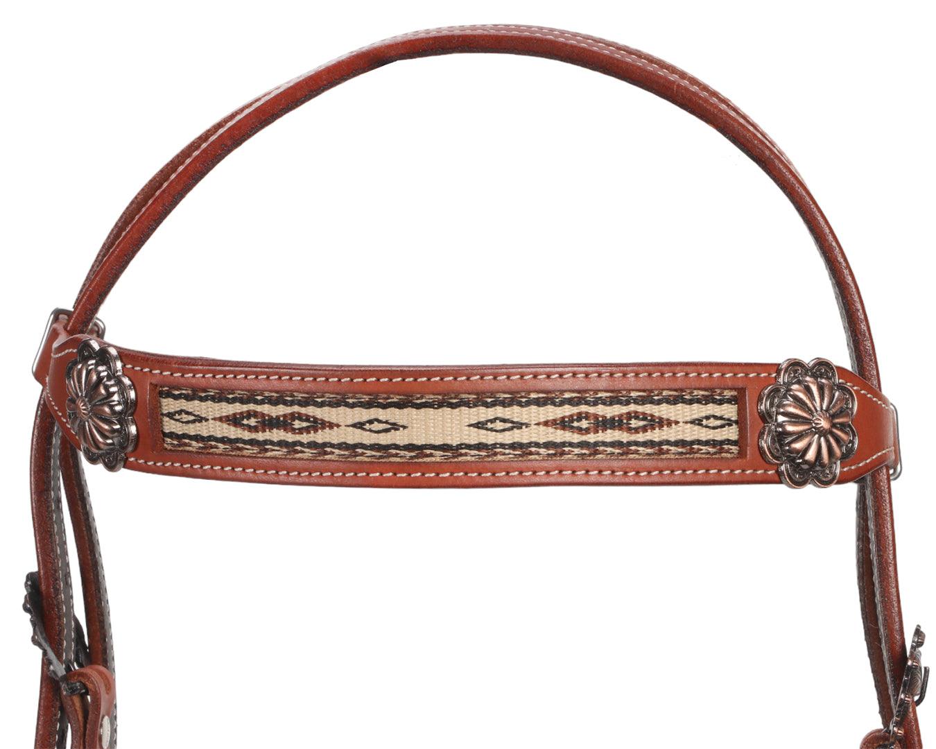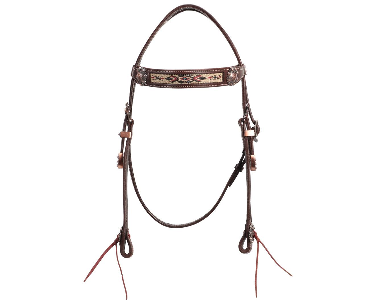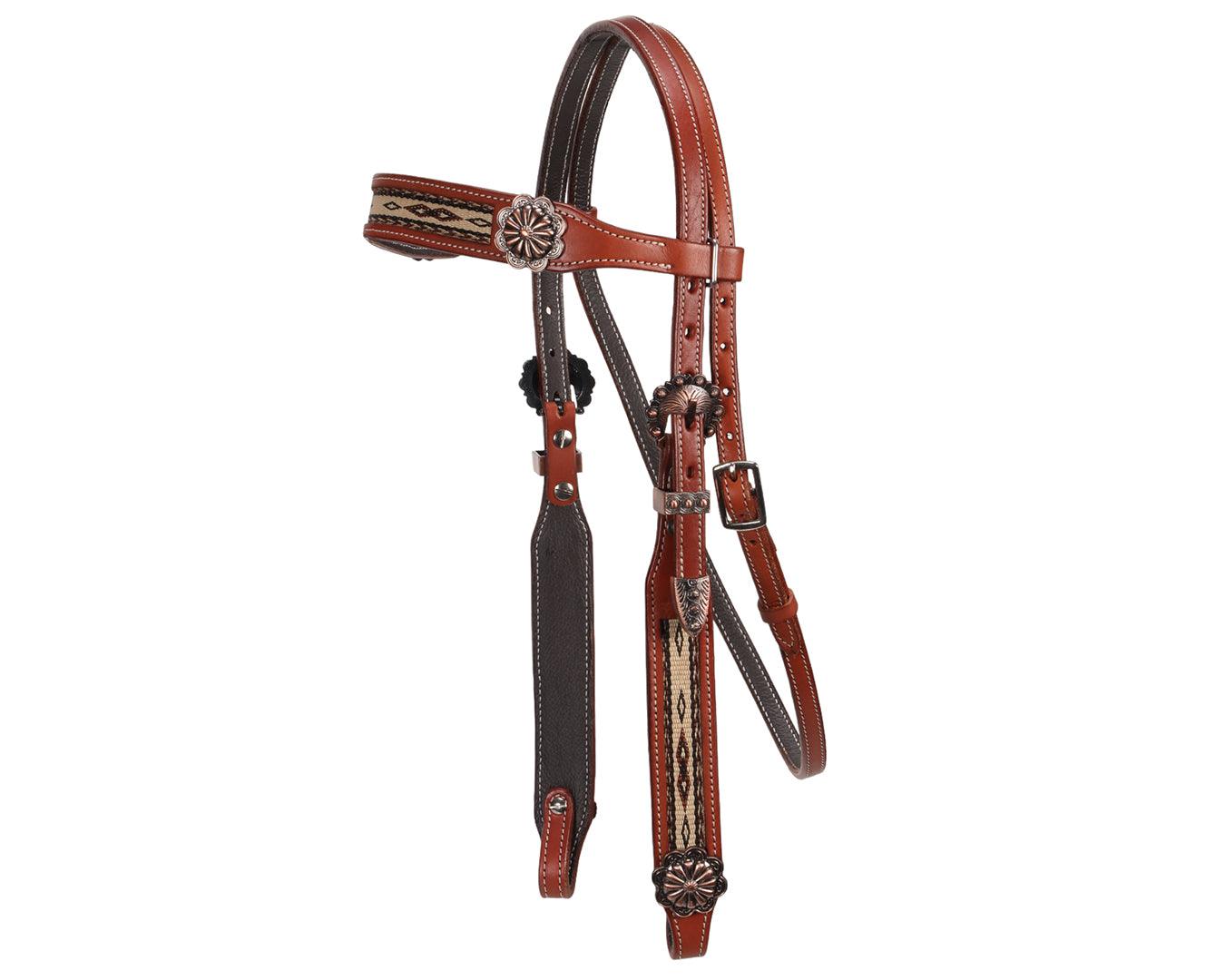 This new Fort Worth Saddlery Set combines elegance and functionality. This premium leather headstall features a distinctive jacquard inlay pattern and antique copper hardware, reflecting Western heritage. Paired with a matching breastcollar, it offers a coordinated look for show or trail. Crafted with Fort Worth's renowned quality, this set embodies both style and durability, available in beautiful brown leather or light!