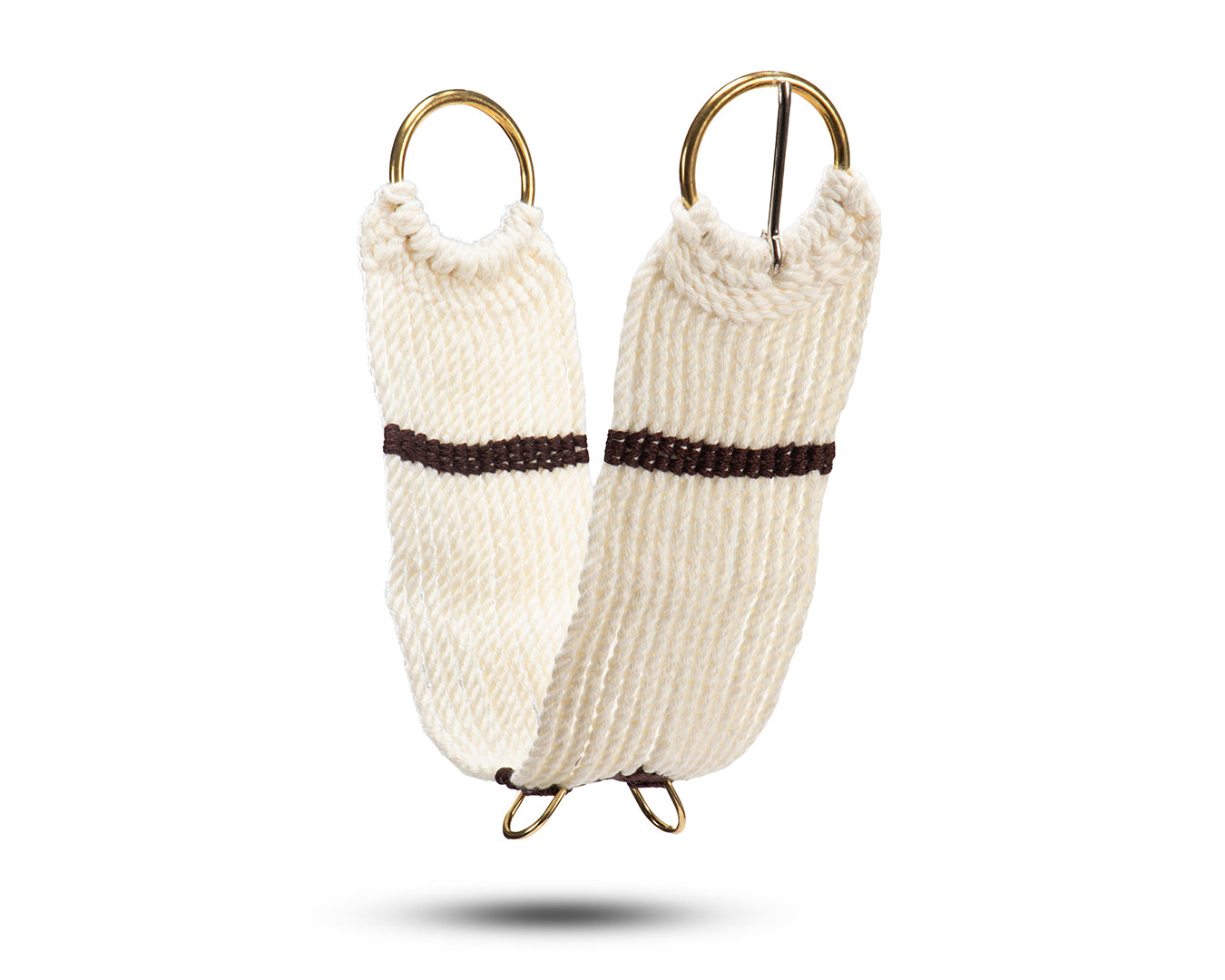 Discover comfort and durability with the GG Australia Ring/Buckle Cord Girth. Crafted with 15 strands of premium white acrylic cord, this girth ensures flexibility, breathability, and long-lasting wear. It features a solid brass ring at one end and a sturdy buckle with tongue at the other for a secure fit. The practical centre Dees make it easy to attach a breastplate or flank girth, offering versatility for every ride. Perfect for everyday training or competition use.