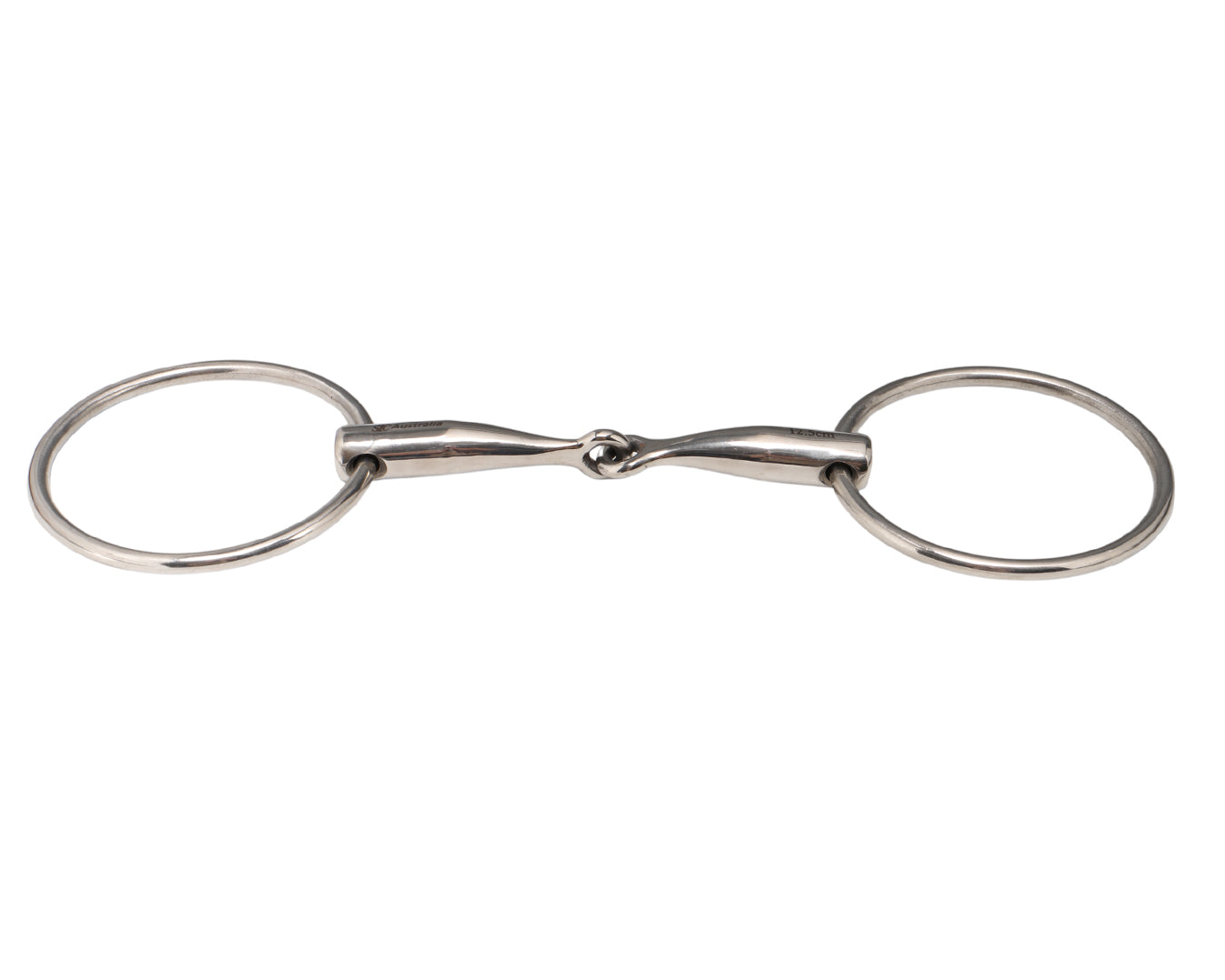 Discover the STC Heavy Mouth Loose Ring Snaffle Bit crafted for optimum comfort and control. Featuring 80mm loose rings, this bit allows for natural mouth movement and prevents bracing. Its heavy mouthpiece is designed to be gentle yet effective, ideal for horses with sensitive mouths or those needing a softer approach. The moveable rings encourage relaxation and improve communication between rider and horse.