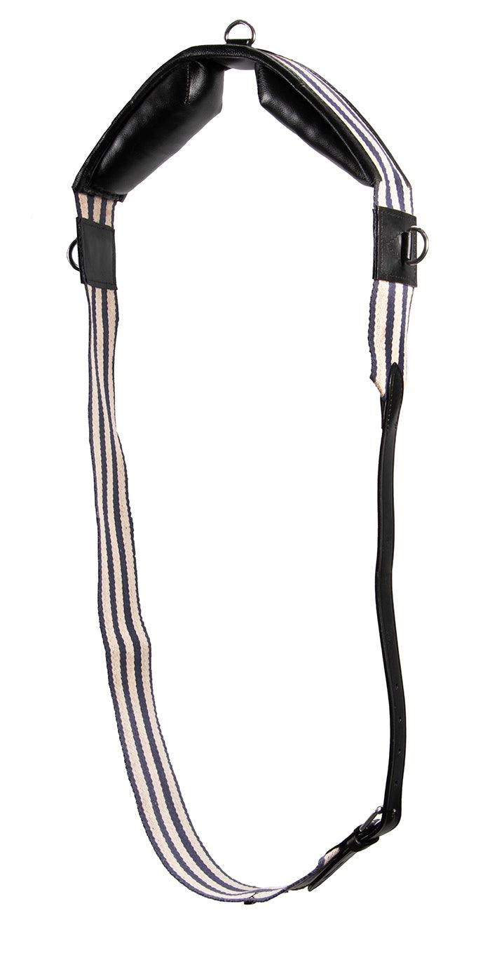 • Heavy duty web construction, leather lined back pad and leather strap adjustment.