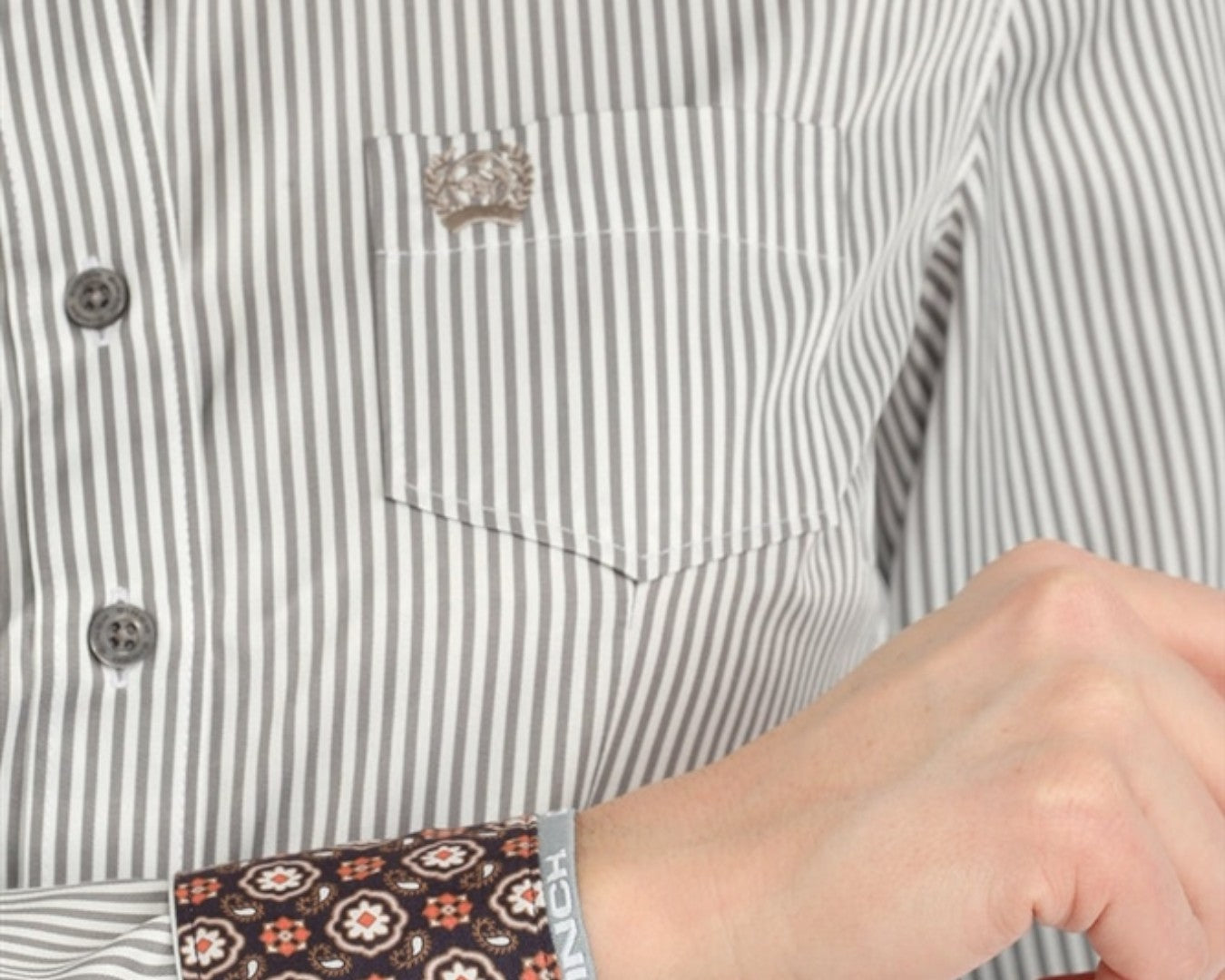 Cinch Ladies Grey Stripe Tencel Long Sleeve Shirt