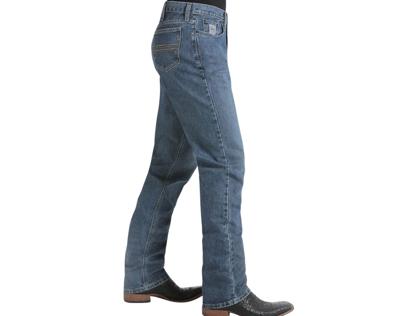 Upgrade your denim game with Cinch Men's Silver Label Jeans—crafted for Aussie blokes seeking both classic style and rugged comfort. These slim fit jeans feature a mid-rise and straight leg, ideal for modern workwear or weekend wear. Built with premium 13.25 oz. rigid cotton denim, they're designed to last through your daily adventures while keeping you looking sharp. The clean finish, classic double-line back pocket stitch, and performance dark stonewash blend function and fashion seamlessly.