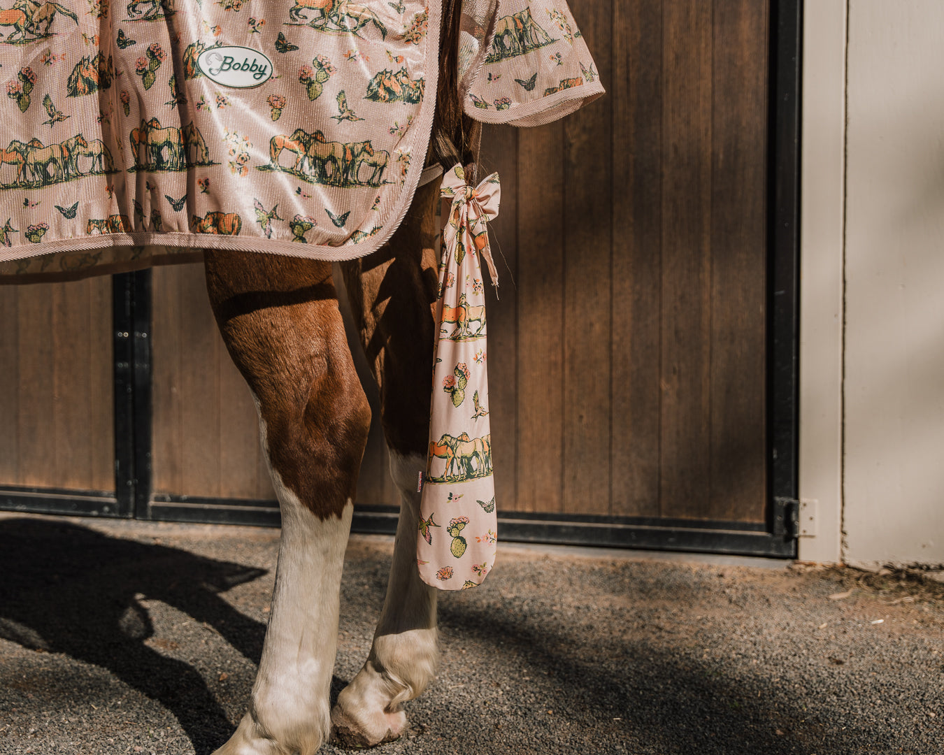 The Bobby Lycra Tail Bag is a high-quality horse tail bag made from stretchy, durable lycra fabric designed to protect and maintain the horse’s tail. It is constructed from a four-way stretch lycra material that fits snugly while allowing flexibility and comfort. The bag is designed to minimize hair loss and keep the tail clean and tangle-free, making it ideal for show days, transport, or extended wear.