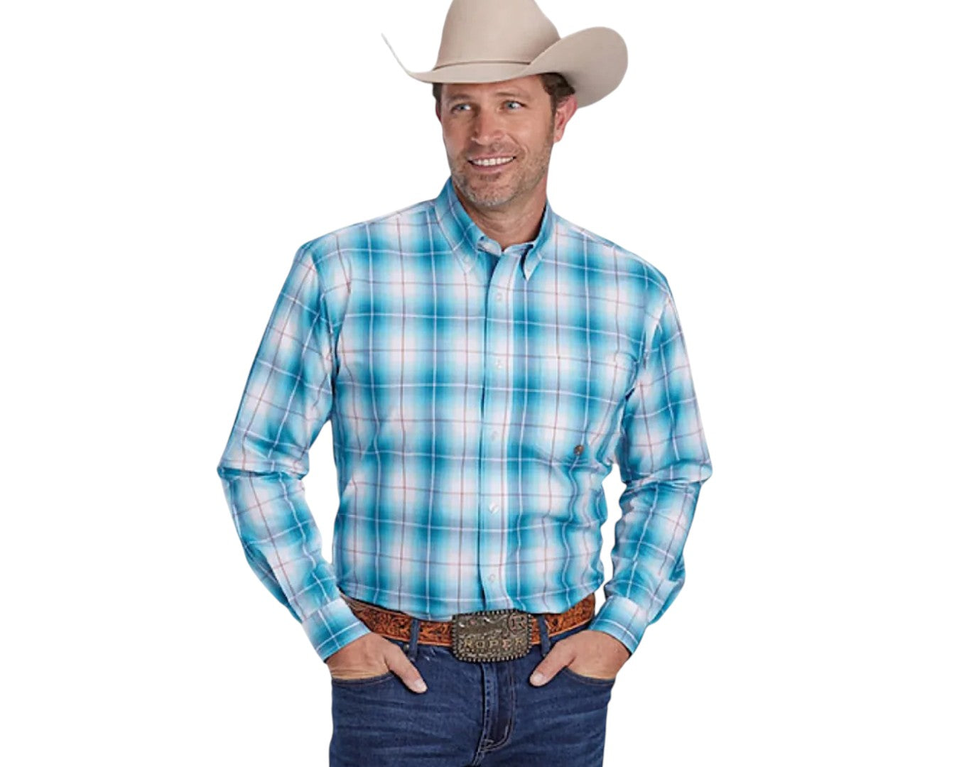 Discover true country style with the Roper Men's Amarillo Collection Shirt in classic plaid blue, crafted for comfort and durability using quality woven cotton and western design details. Regular fit and snap front offer unbeatable practicality. This versatile shirt features functional pockets, stylish “R” embroidery, and a refined paisley print, making it a standout for any occasion.