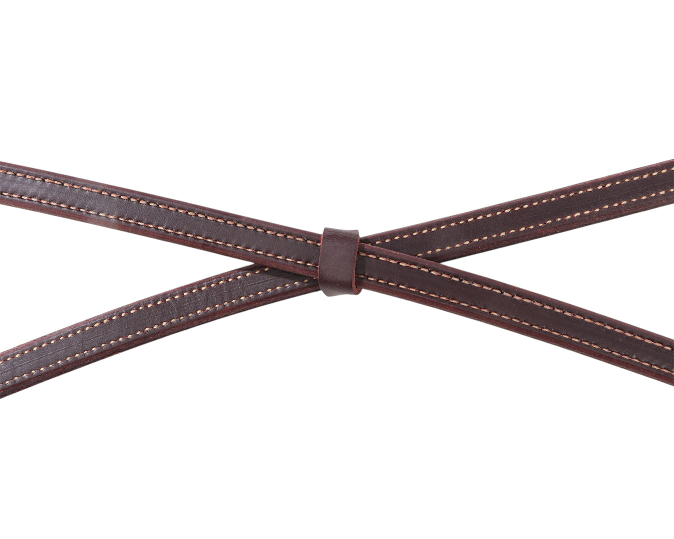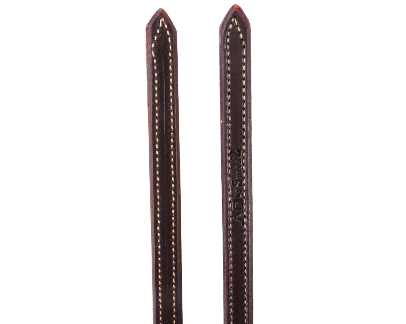 Elevate your riding experience with the Professional's Choice Al Dunning Collection Oiled 2-Ply Reins. These 5/8" wide burgundy latigo reins are expertly doubled and stitched, providing exceptional durability and a superior feel right out of the box. Edged and oiled for added comfort, these reins ensure a secure grip while enhancing your performance in the saddle. Proudly made in the USA, they reflect quality craftsmanship that equestrians trust. Upgrade your gear with reins designed for both style and functionality—shop now for this essential riding accessory!