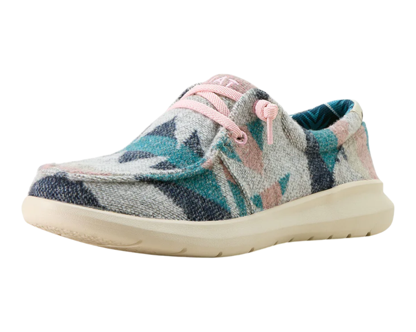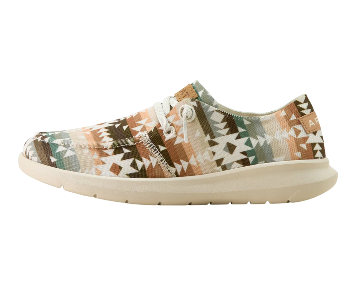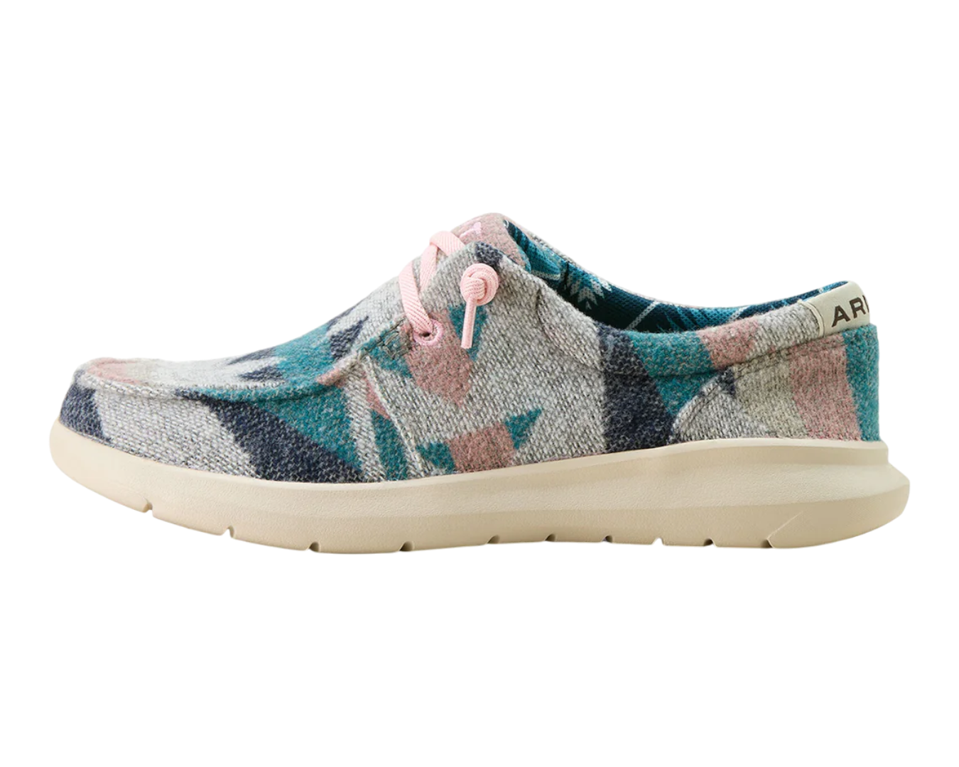 The Ariat Womens Hilo Shoe is an ultra-light, ultra-comfy casual moc designed for laid-back Western style on busy days. With its soft fabric upper, cushy insole and flexible FLX-style foam outsole, this easy-on lace shoe is perfect for slipping on after riding, running errands or relaxing around the yards. The low-profile design pairs effortlessly with jeans, tights or shorts, while fun prints and colours add personality to every step. Discover everyday comfort with a Western twist in a shoe that feels as good as it looks—shop the Ariat Womens Hilo Shoe now.