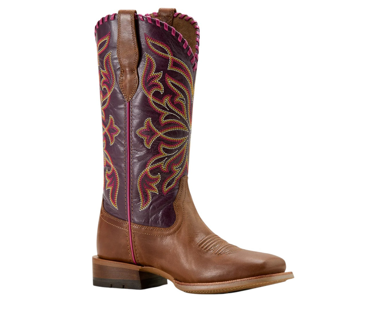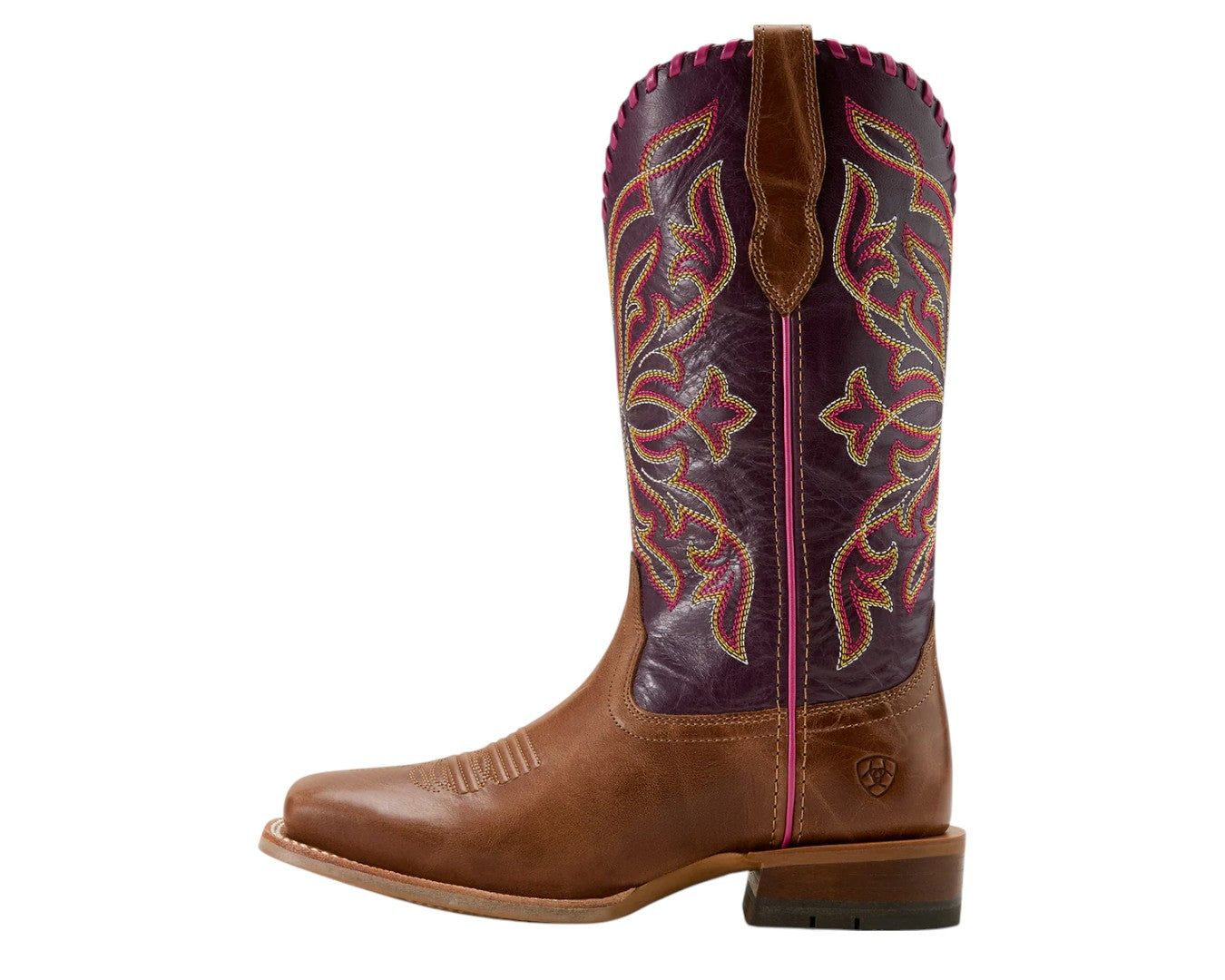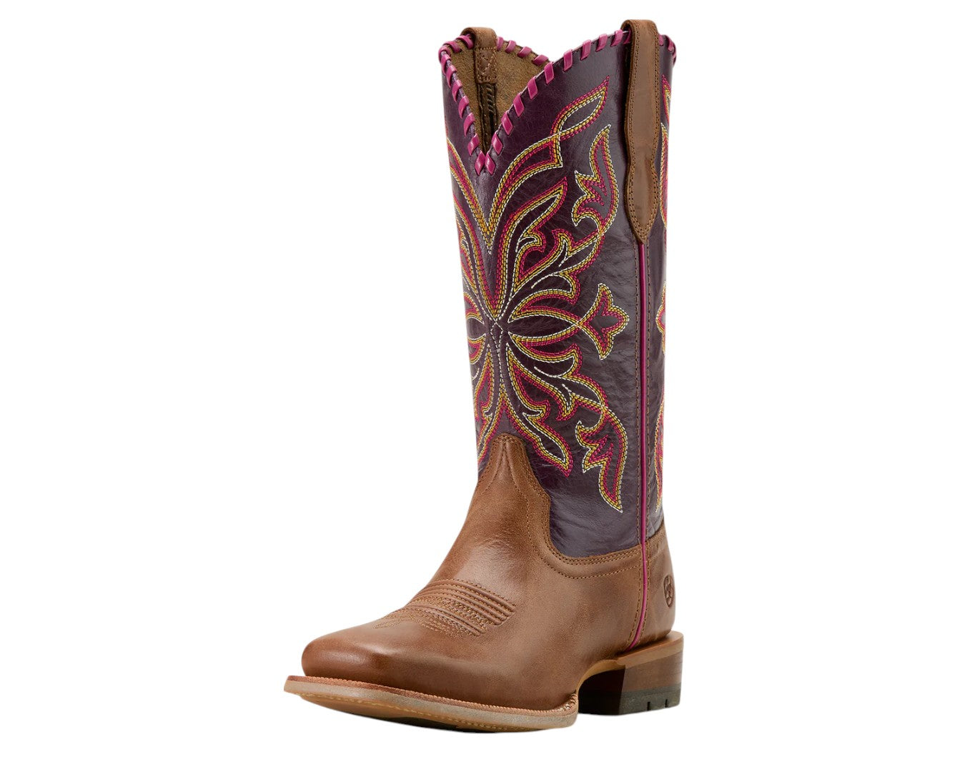 Discover the Ariat Women's Showdown Western Boot, designed for arena-ready performance and all-day comfort. Featuring a 12" shaft with a wide square toe and a 1.5" horseman heel, these boots combine classic western style with modern technology. Equipped with ATS® ergonomic support and TekStep cushioning, they provide superior comfort on uneven terrain. The full-grain leather upper ensures durability, while the Duratread™ sole offers maximum wear resistance. Perfect for riders and western enthusiasts seeking long-lasting comfort and style.