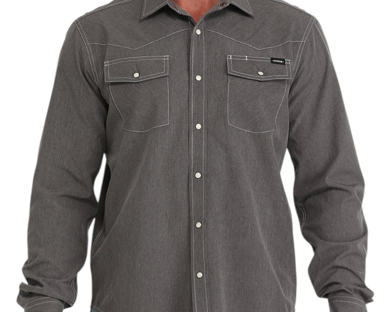 In the field, at the ranch, or around town, the Cinch Men’s Western Snap Front Shirt is a wardrobe essential built for comfort and versatility. Crafted from lightweight poly-spandex stretch fabric, it offers easy movement and all-day breathability. The back yoke vent enhances airflow, while the embroidered Cinch logo and cream marble snaps add a touch of rugged style. Double front pockets keep essentials close at hand, making it both functional and fashionable. Perfect for work or downtime, this durable Western shirt keeps you looking sharp wherever you go.