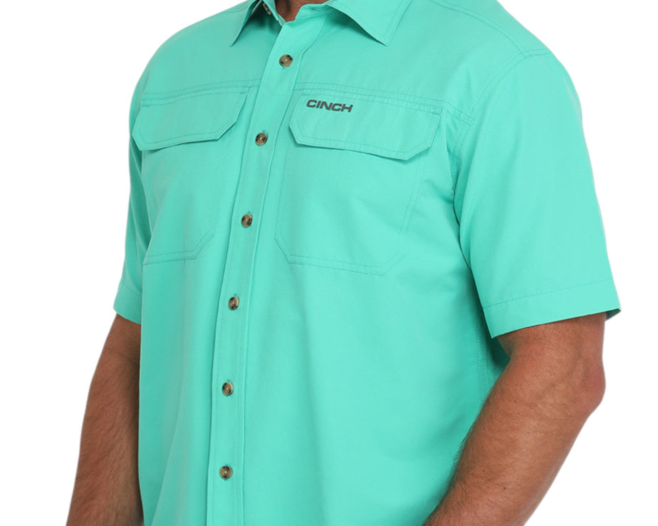 Built with adventuring in mind, the Cinch Men's ARENAFLEX Western Shirt delivers a perfect blend of comfort, durability, and style. This lightweight turquoise shirt is crafted from premium poly-spandex ripstop fabric, providing breathability and stretch for all-day comfort. Designed for active men who love the outdoors, it features a back yoke vent for added airflow, double front pockets for convenience, a sleek logo heat transfer, and eye-catching tortoise buttons for a polished Western finish. Whether you're on horseback, working the land, or exploring new trails, this shirt offers the ultimate in performance and style.