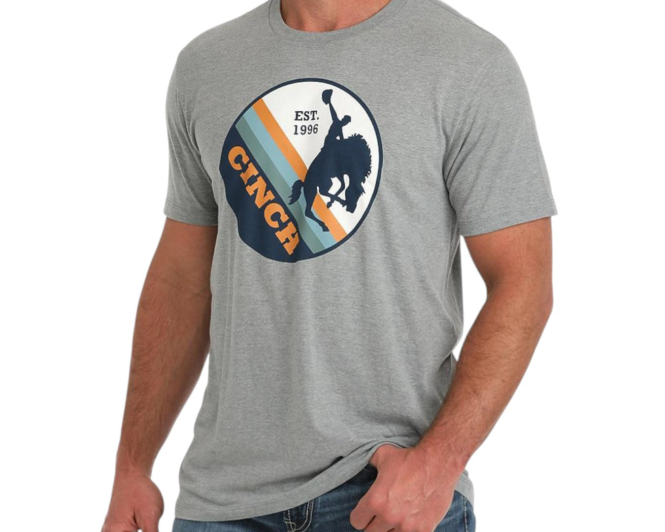 Our grey short sleeve tee from Cinch combines classic comfort with modern Western flair. Featuring a bold bucking bronco logo on the front, this versatile tee pairs perfectly with your favourite blue jeans for an effortlessly rugged look. Crafted from a soft cotton-poly blend, it offers breathable comfort that lasts all day long. Designed for the Aussie man who values quality, durability, and style, this tee is ideal for casual wear or layering in any season. Discover easy-going comfort and authentic Western style.