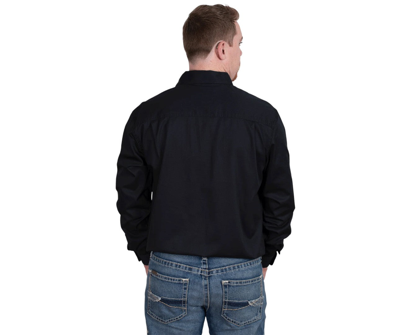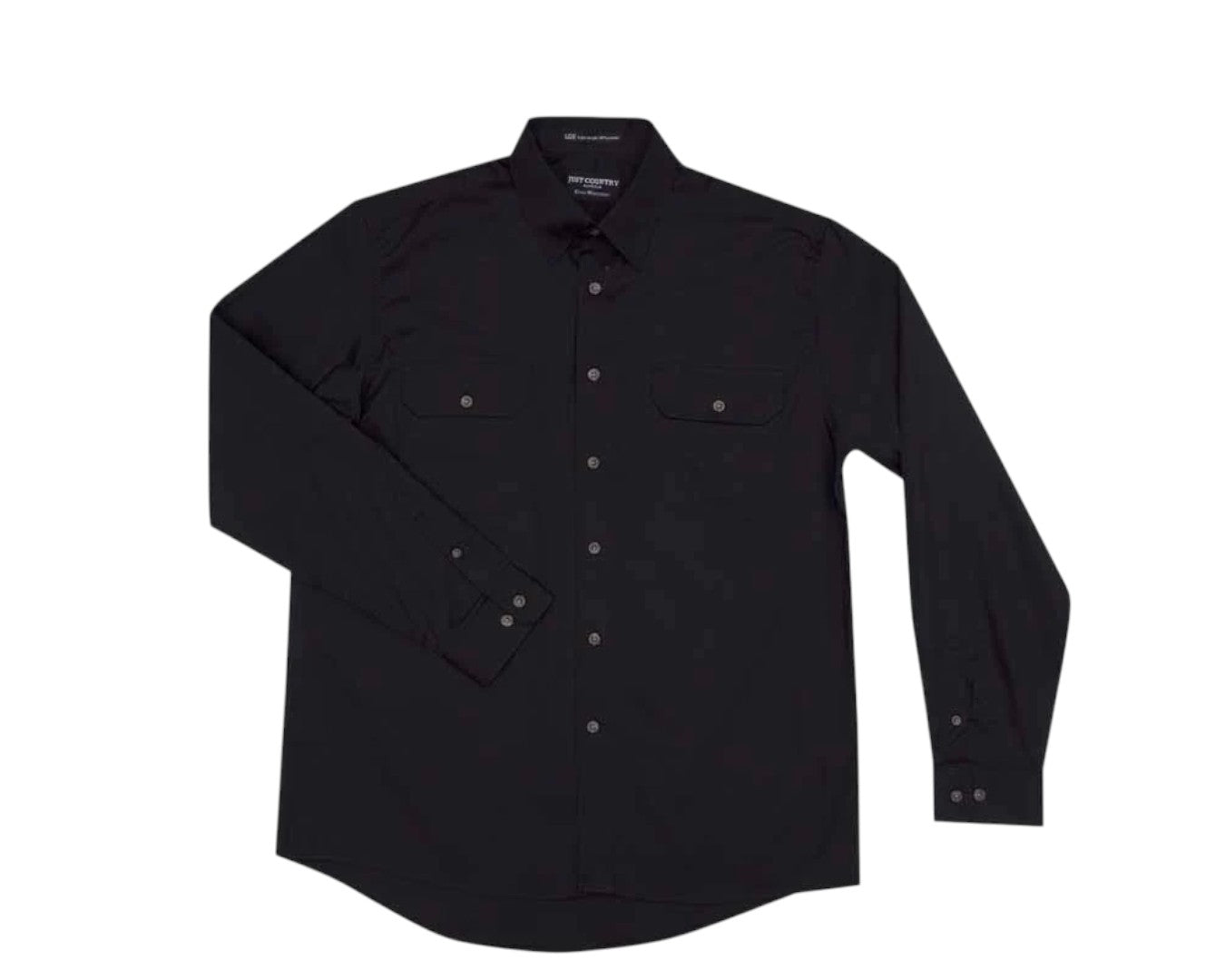 Stay work-ready all day in the Just Country Evan Men’s Work Shirt, crafted from breathable 100% cotton for tough Aussie conditions. Designed for station, farm or everyday wear, it offers long sleeves, long tails and a full button front for easy layering and a tidy tucked-in look. Double chest pockets with a handy pen slot and durable twin needle stitching add extra functionality and strength. Side back pleats allow comfortable movement whether you are on the tools, in the yards or on the road.