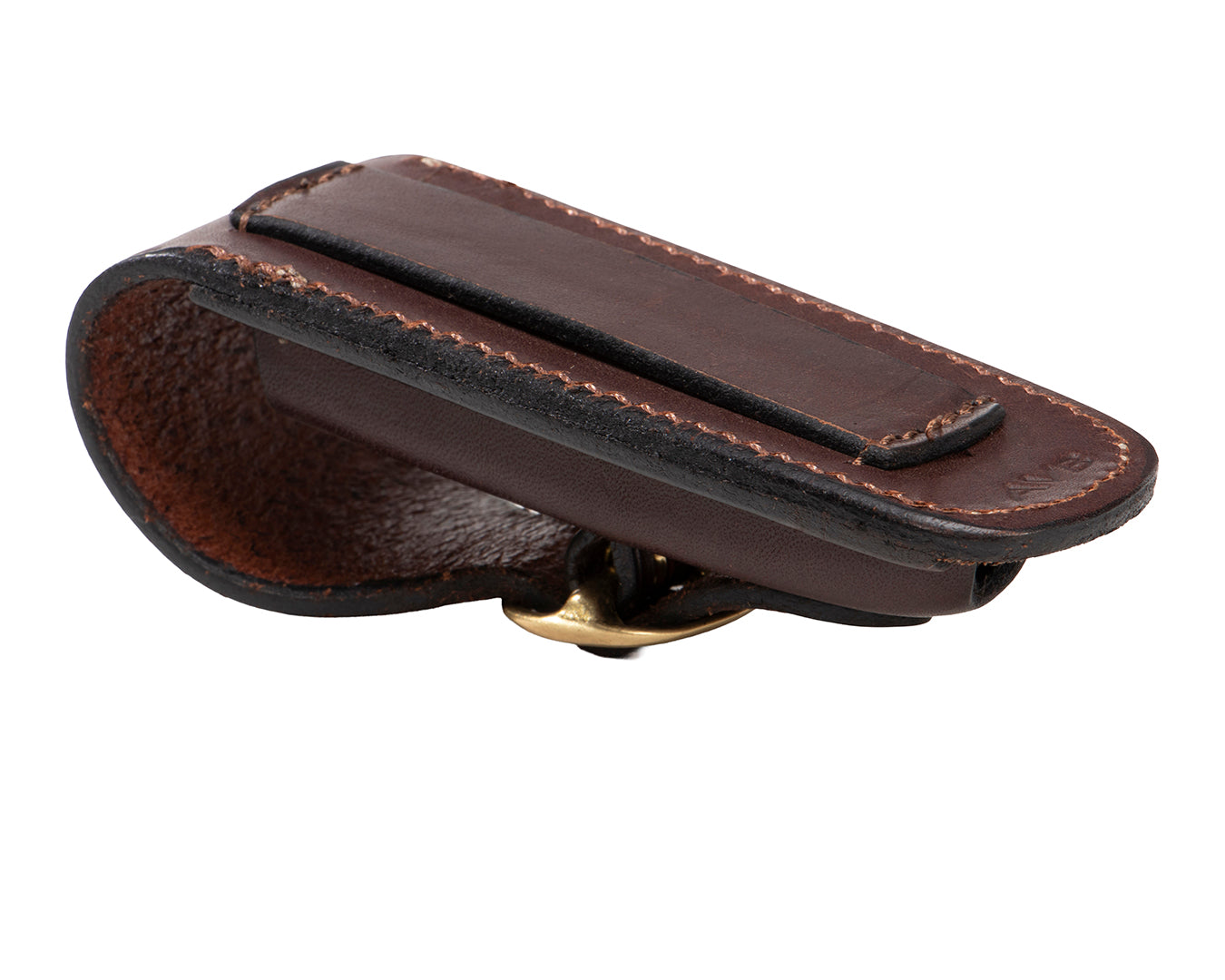 Sidney Hamilton leather goods are renowned for excellent craftsmanship, and this Large Knife Buckle Pouch is no exception. Expertly made from premium top-grain leather, it combines durability with timeless style. Designed to fit a knife up to 4 inches long, it keeps your tool secure and easily accessible. The pouch attaches neatly to belts up to 1.5 inches wide, offering convenience for everyday carry. Finished with a solid brass buckle, this pouch delivers both practicality and heritage appeal. Discover fine quality and classic design with Sidney Hamilton.