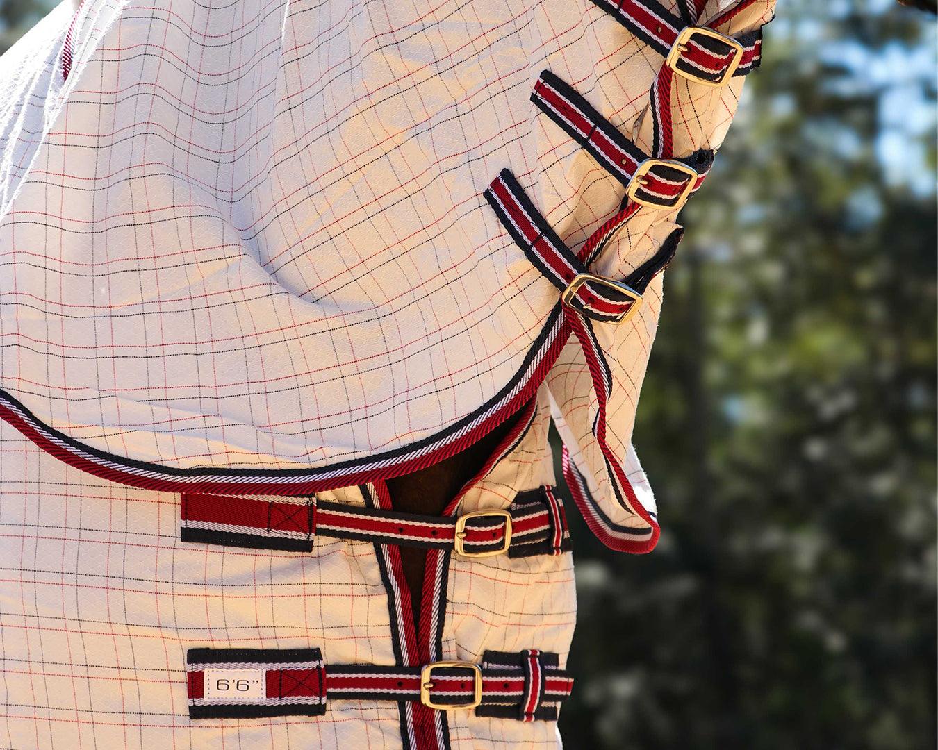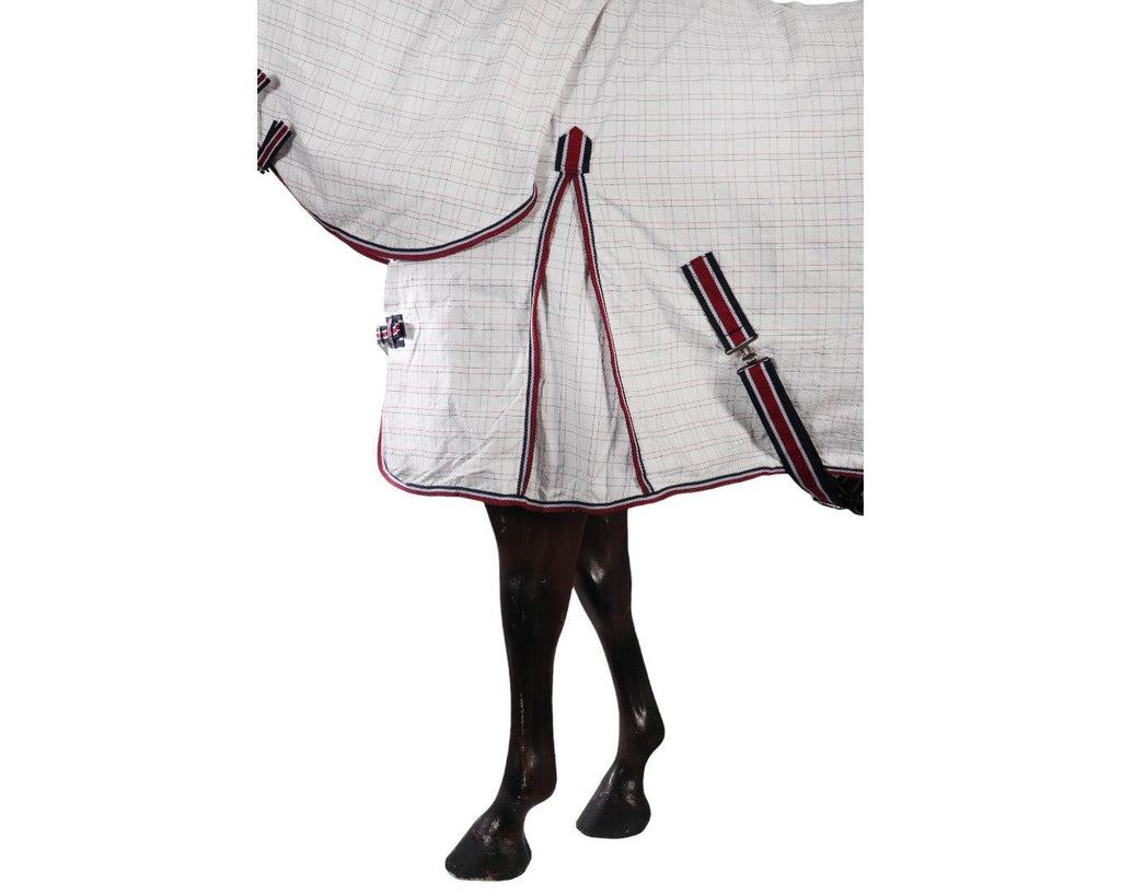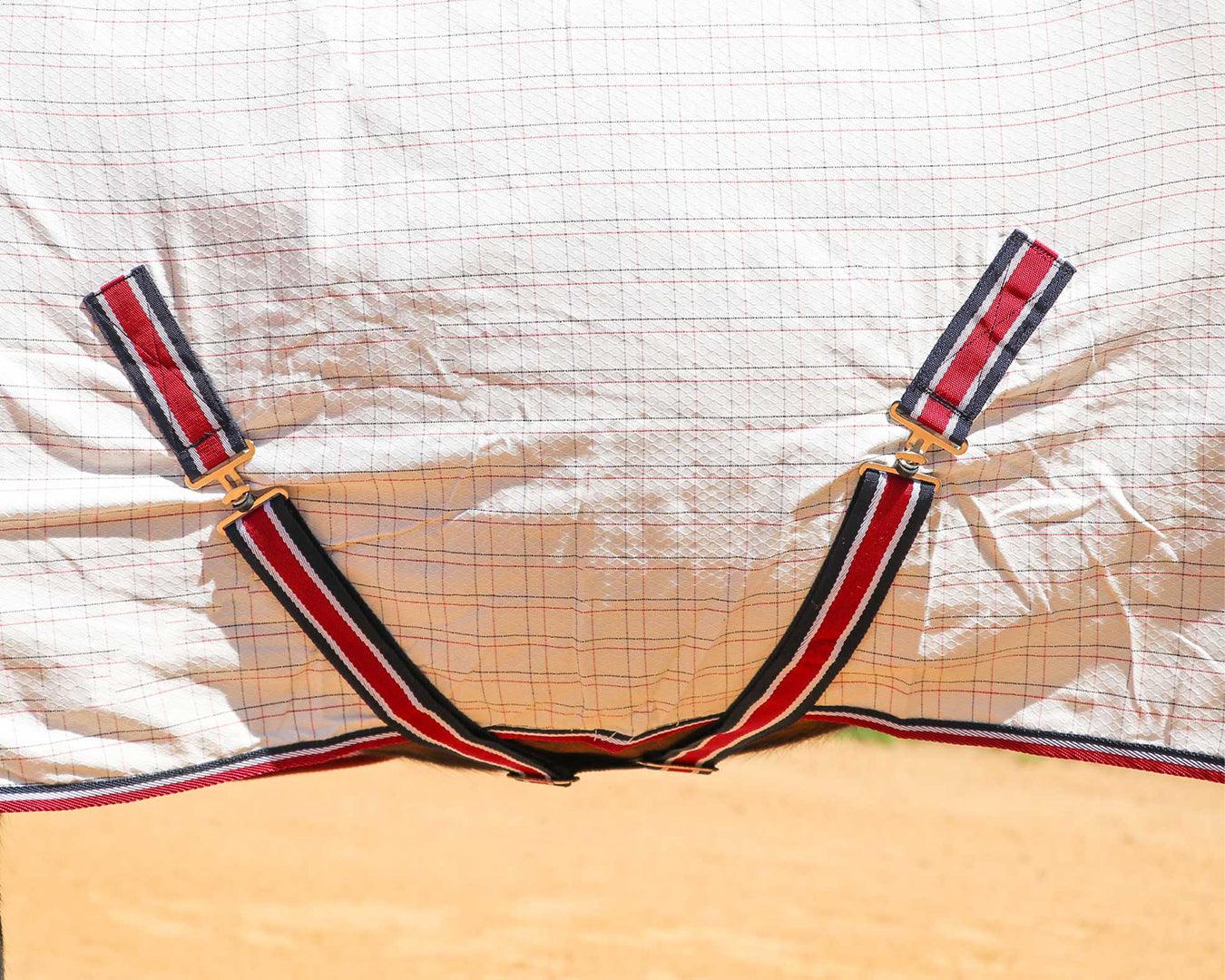 Experience the pinnacle of equine comfort and durability with the Kool Master Horse Rug Combo, expertly crafted from diamond weave tear-stop material. Revel in the convenience of easy-on, easy-off functionality and enjoy peace of mind knowing your horse is shielded from the elements with the added flair of radiant navy and red accents.