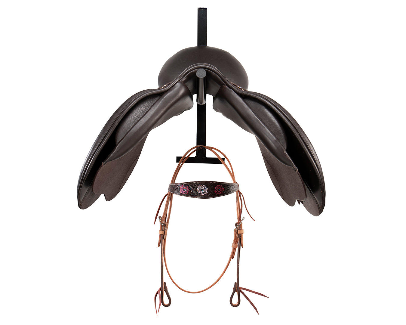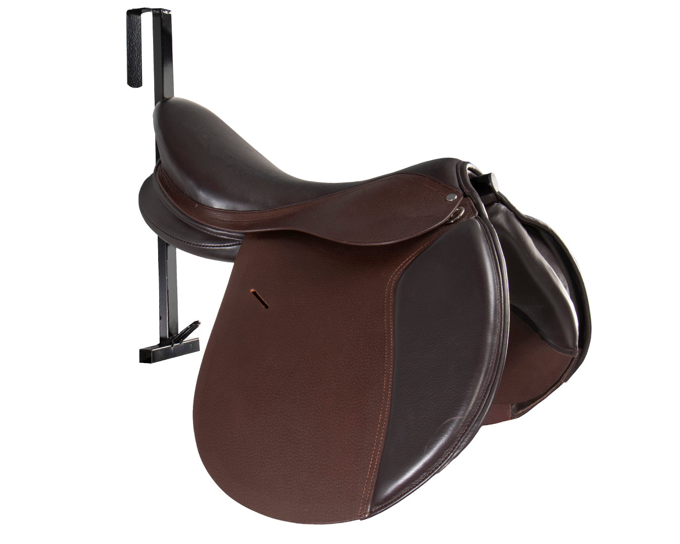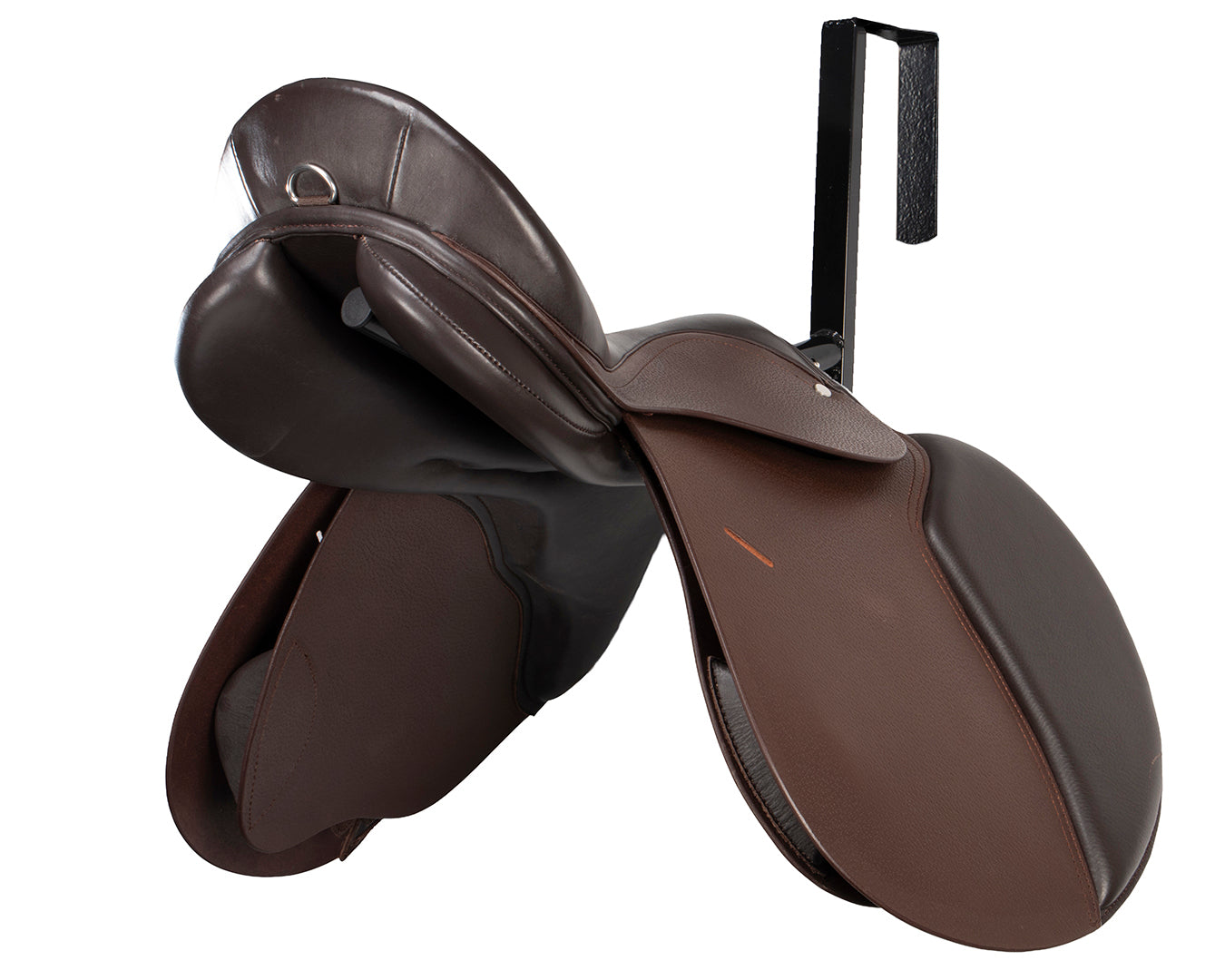 Discover the convenience of the STC Portable Collapsible Saddle and Bridle Rack Single, perfect for English saddle owners seeking easy storage solutions. This lightweight, compact rack packs flat for effortless transport and quick setup anywhere with push-button assembly. Featuring a handy bridle hook, it keeps your saddle and bridle organized and accessible. Ideal for shows, stalls, or home use, it simplifies tack care while saving space. With over fence hanging hooks, this single saddle rack is perfect to take to pony club, shows, or to use at home.