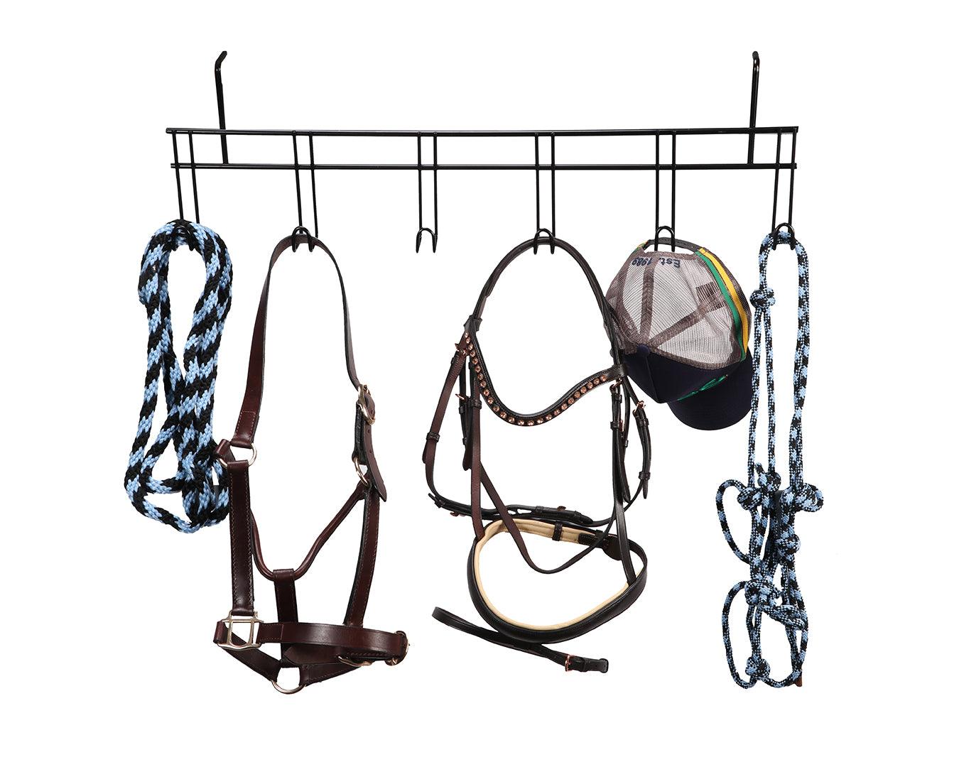 Keep your tack room tidy and organised with this practical Six Hook Tack Rack. Perfect for hanging halters, lead ropes, and other equipment, it provides ample storage space. The rack is designed to hang over any fixed surface, making it easy to install and use. Its portable design allows you to take it with you to competitions, ensuring your gear stays organised on the go.