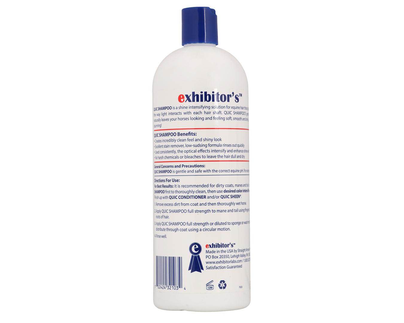 Exhibitor's Quic Shampoo is a shine intensifying solution for equine hair. This exceptional shampoo provides deep-cleaning action, leaving your horse's hair soft, smooth, and brilliantly shiny.