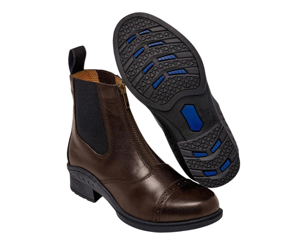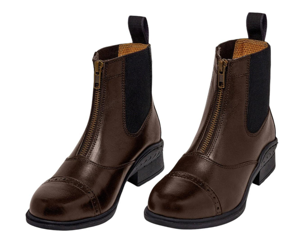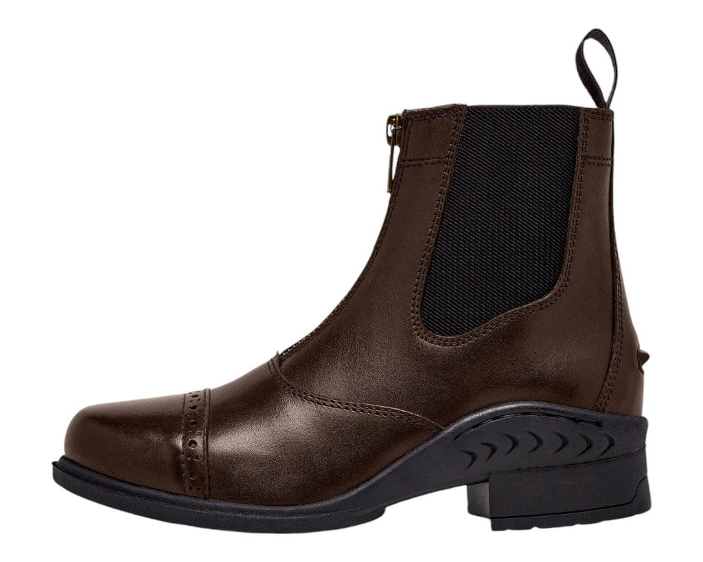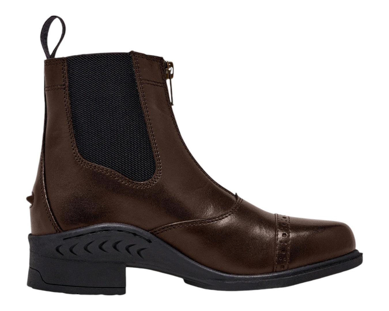 Elevate your riding experience with the Huntington Ladies Leather Zipper Boot, a perfect blend of style and functionality for the discerning equestrian. Crafted from full-grain supple leather, these boots mould perfectly to your foot and ankle, providing exceptional support and comfort. The easy-fit zip front and elasticated sides ensure a snug fit, while the contoured leather shaping offers superior ankle support. With elegant punched leather detailing and reinforced stitching, these boots seamlessly combine durability with sophistication. Available in classic black and brown, they're the ideal choice for riders of all levels seeking quality Australian craftsmanship.
