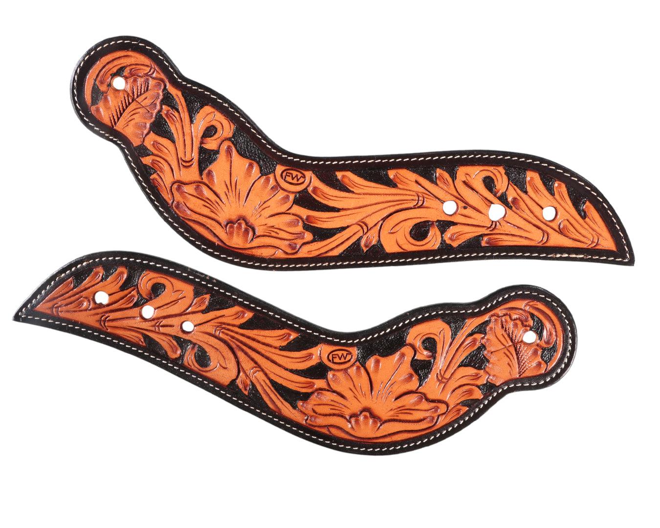 The Frontier Spur Straps by Fort Worth Saddlery combine elegance and craftsmanship with intricate hand-tooled filigree carving. Featuring a distinctive two-tone leather design in a dove-wing shape, these spur straps are perfect for riders who appreciate detailed Western artistry and want to add a touch of refinement to their tack.