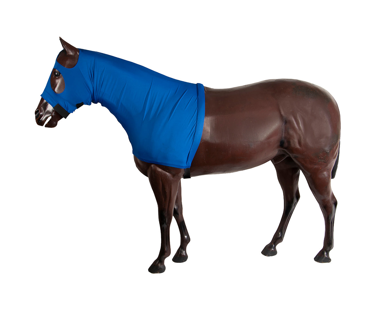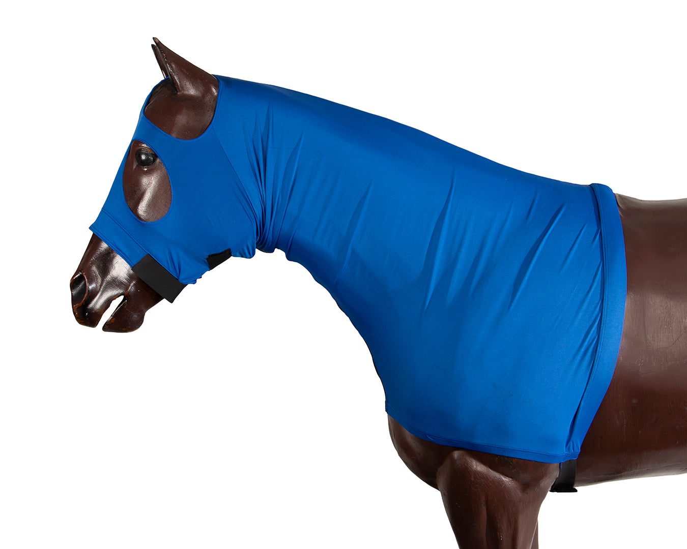 The Wonder Coat Lycra Full Hood is designed to provide a comfortable and secure fit for your horse. Crafted with four-way stretch Lycra, this hood ensures a snug and tailored fit, preventing it from shifting or sliding out of place. One of the key features of the Wonder Coat Lycra Full Hood is its unique seam placement. Instead of a centre face seam, the hood is seamed under the eyes, creating a sculpted fit that keeps the hood firmly in position. This innovative design not only enhances the overall look of the hood but also contributes to its functionality.