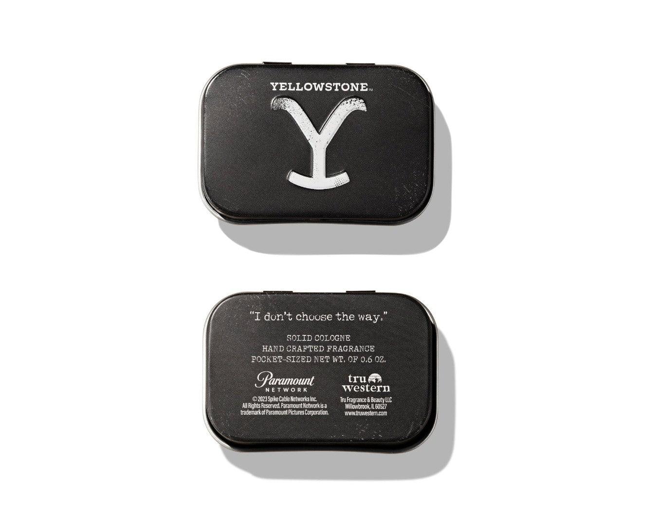 Experience the rugged essence of Rip Wheeler with Tru Western Yellowstone Original Solid Cologne. This pocket-friendly fragrance captures the spirit of cowboy cool in a convenient, travel-ready format. Blending aromatic citrus notes of desert verbena and yellow grapefruit with masculine woods like vetiver root, golden aspen, and Australian cedar, this solid cologne embodies the rough and tumble charm of Yellowstone's iconic ranch hand. Packaged in a sleek tin, it's perfect for the modern cowboy on the move. Simply warm the cologne with your fingers and apply to pulse points for long-lasting, complex aroma. Whether you're wrangling cattle or conquering the urban frontier, Yellowstone Original keeps you smelling good all day. Embrace your inner Rip Wheeler – shop Tru Western Yellowstone Original Solid Cologne now!