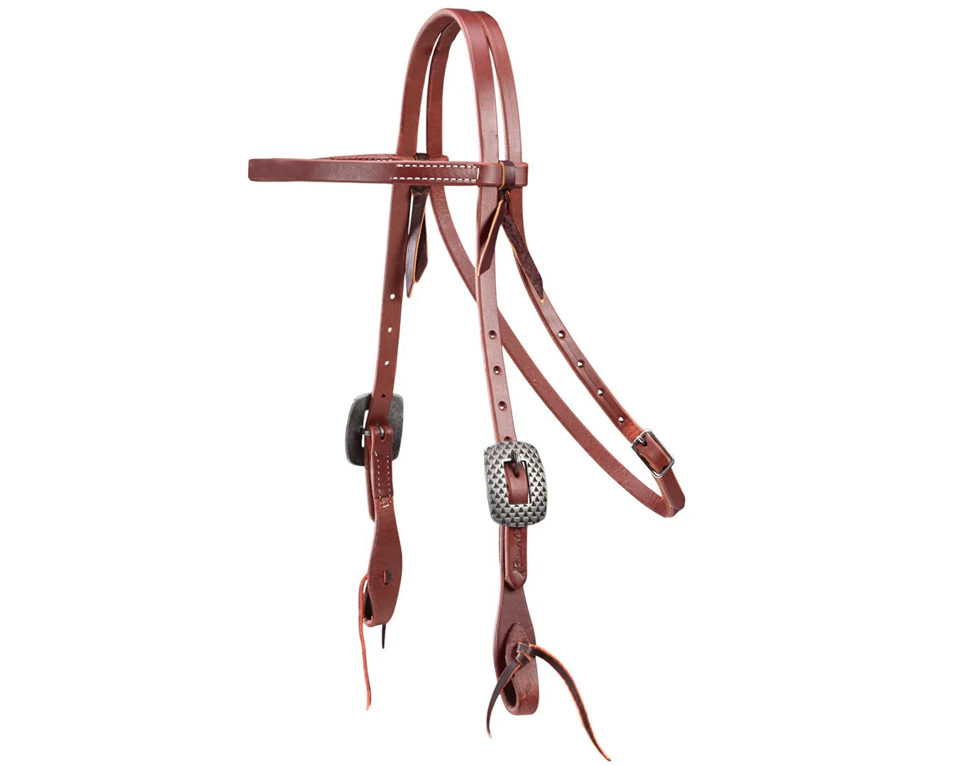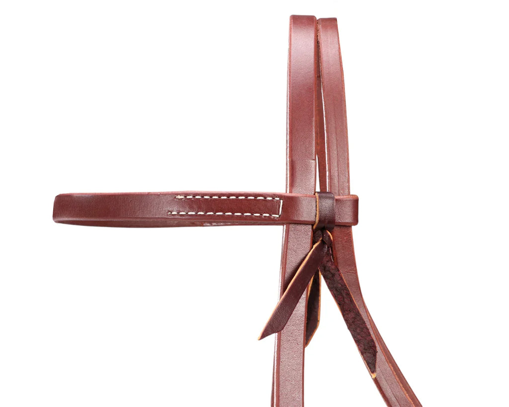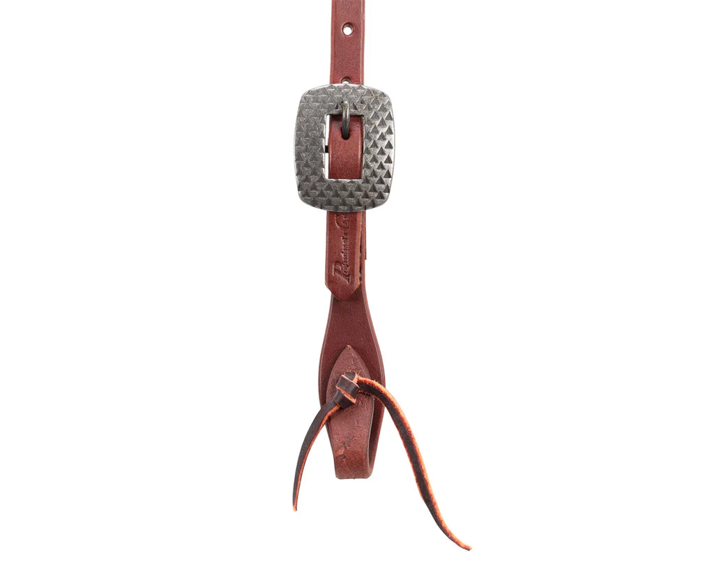 Crafted for hardworking riders and horses, the Ranch Heavy 5/8" Browband Headstall combines durability with understated western style. Made in the USA from robust single-ply harness leather, this headstall is heavily oiled to withstand daily use and the elements. It features contoured cheek pieces for an improved fit, finished with lace tie ends and two adjustable rasp-style heel buckles that offer a secure, classic look. Each piece is carefully hand-rubbed and edged to enhance comfort, longevity and appearance. Whether you’re in the paddock or the arena, this headstall delivers dependable performance with timeless style.